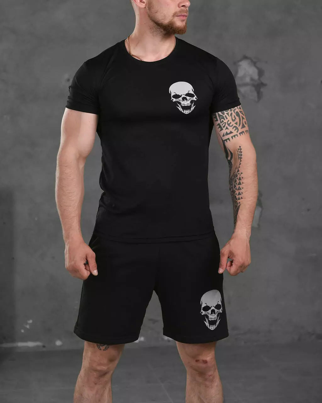 Комплект чоловічої літньої шорти + футболка з принтом