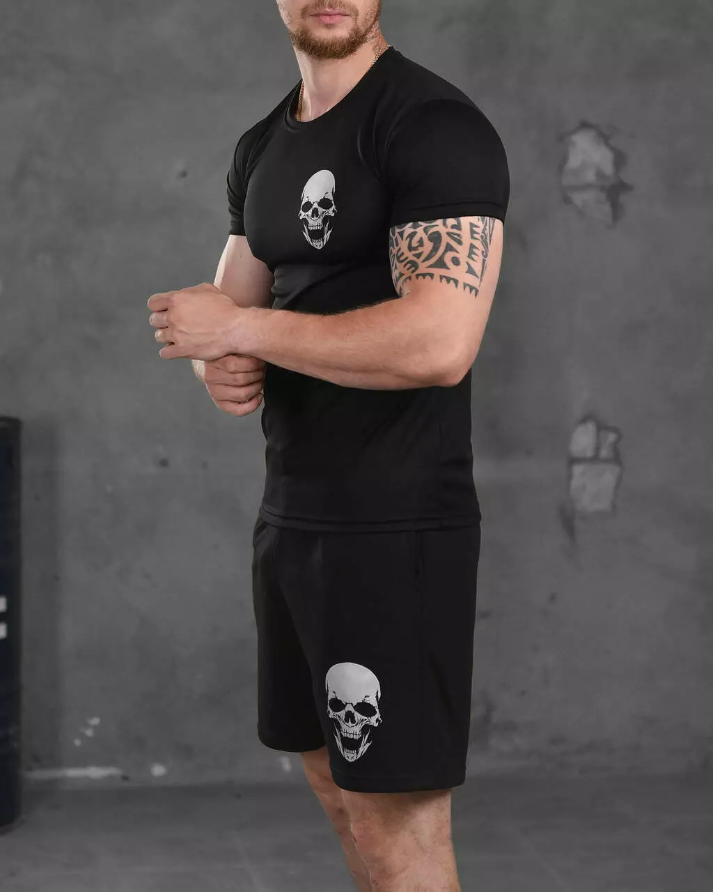 Підготуйтеся до літа з нашим стильним чоловічим комплектом, що містить комфортні шорти та футболку. Шорти виготовлені з легкого дихаючого матеріалу, який ідеально підходить для активного способу життя. У них зручний пояс на зав'язках для ідеальної посадки. Футболка виготовлена з поліестеру, що забезпечує еластичність і комфорт. Вона має стильний принт на грудях і чудово поєднується із шортами.
