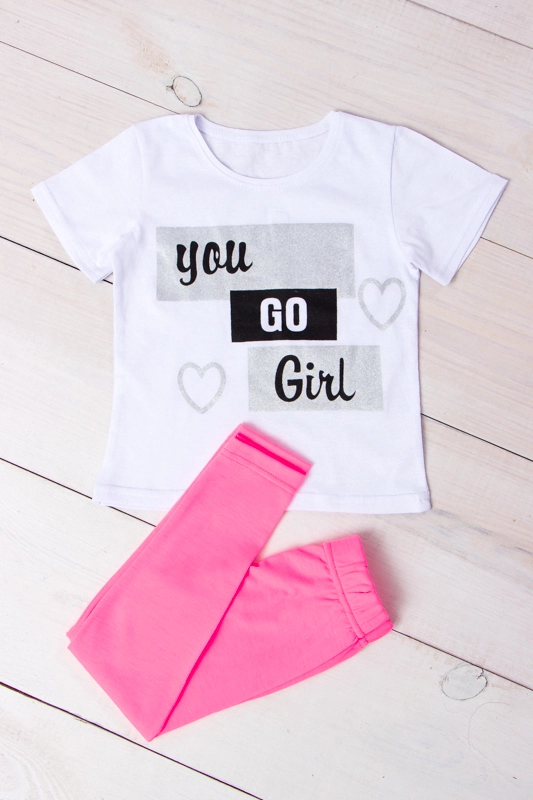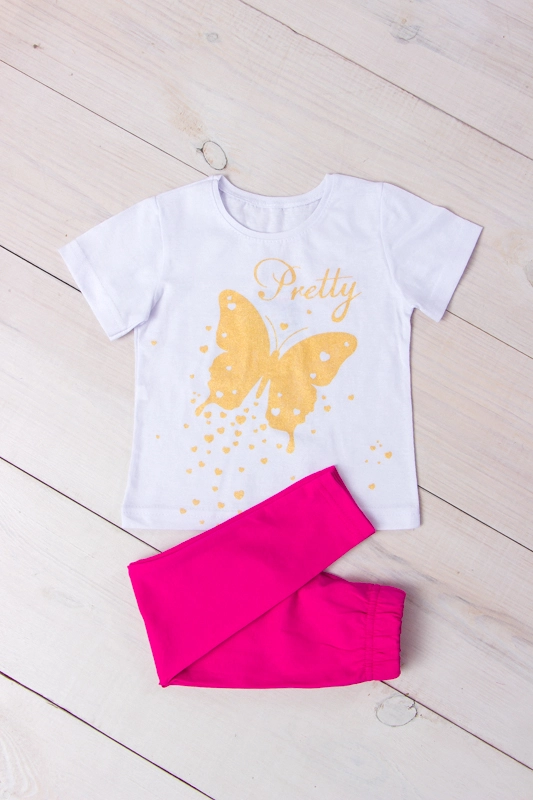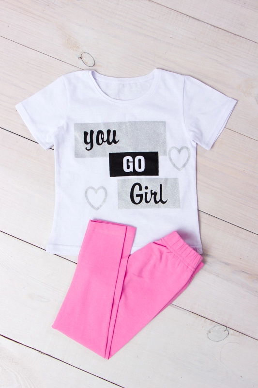 комплект з футболки та лосини. Футболка з коротким рукавом, має