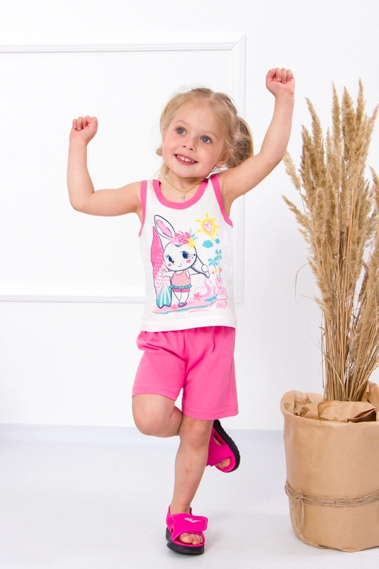 Серед великої різноманітності дитячих дизайнерських речей бренду «Трикотажний Край» не складно підібрати одяг, яка задовольнить вимоги і батьків, і дитини. Літній комплект, що складається з майки і шортів, має всі шанси стати одним з найпопулярніших в дитячому гардеробі. Одяг, виготовлений з легкого бавовняного трикотажу, стане ідеальним варіантом для веселих забав. У ньому зручно відпочивати на свіжому повітрі і проводити час вдома або в гостях. Бавовна добре пропускає повітря, має хороші гігроскопічні властивості, що не створить передумов для перегріву. Маєчка з яскравим принтом і контрастною беєчкой відмінно поєднується з шортами з набору. Шорти з широкою еластичною резинкою на поясі подарують дитині максимум комфорту. Завдяки тому, що комплект має вільний крій, він прекрасно підійде для захоплюючих ігор на пляжі або в пісочниці.