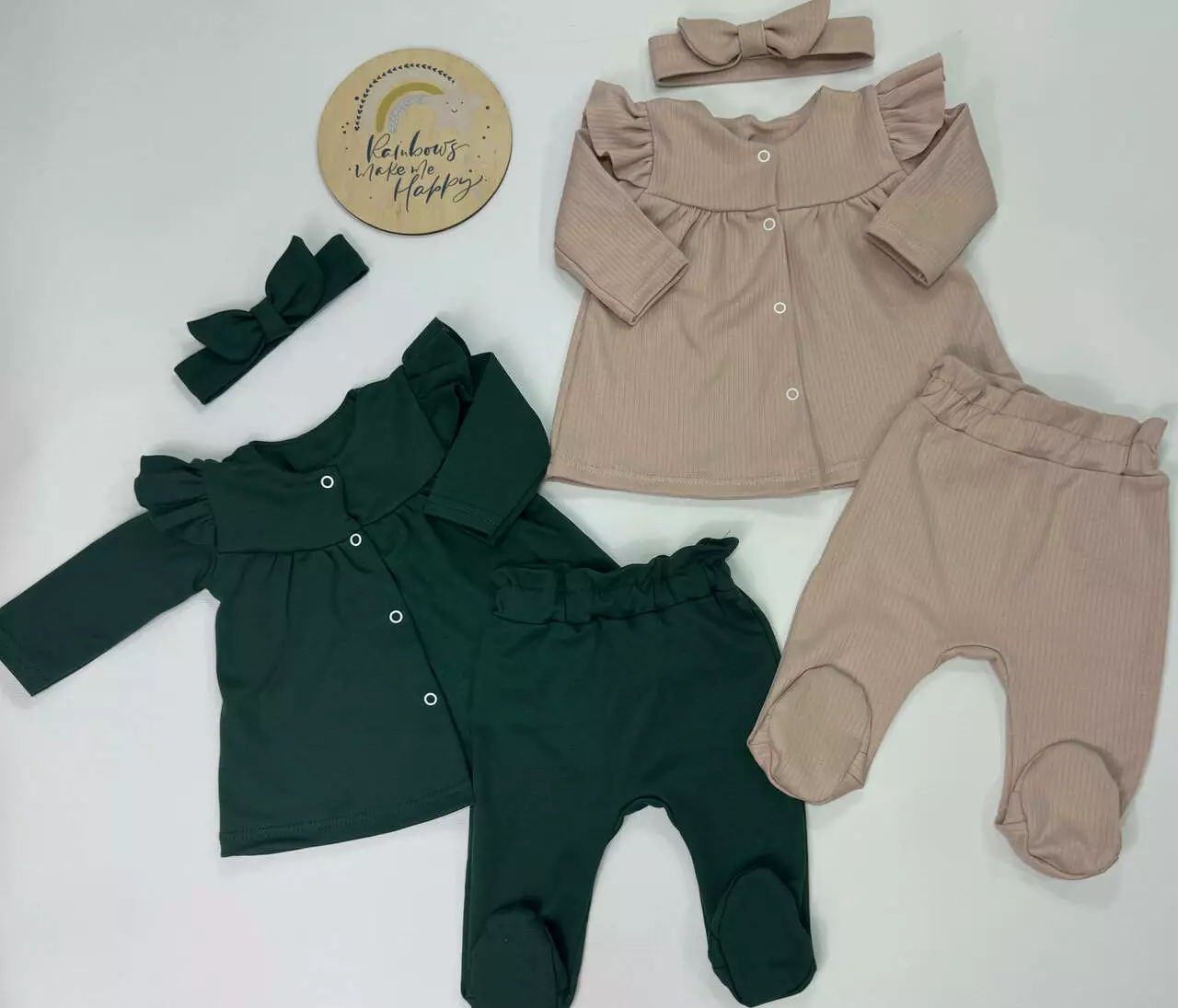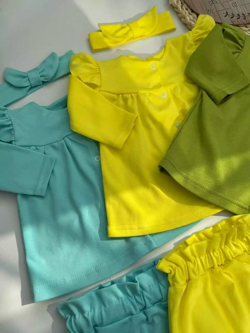 Комплект для девочки ????: туника с рюшами + ползунки + повязка
