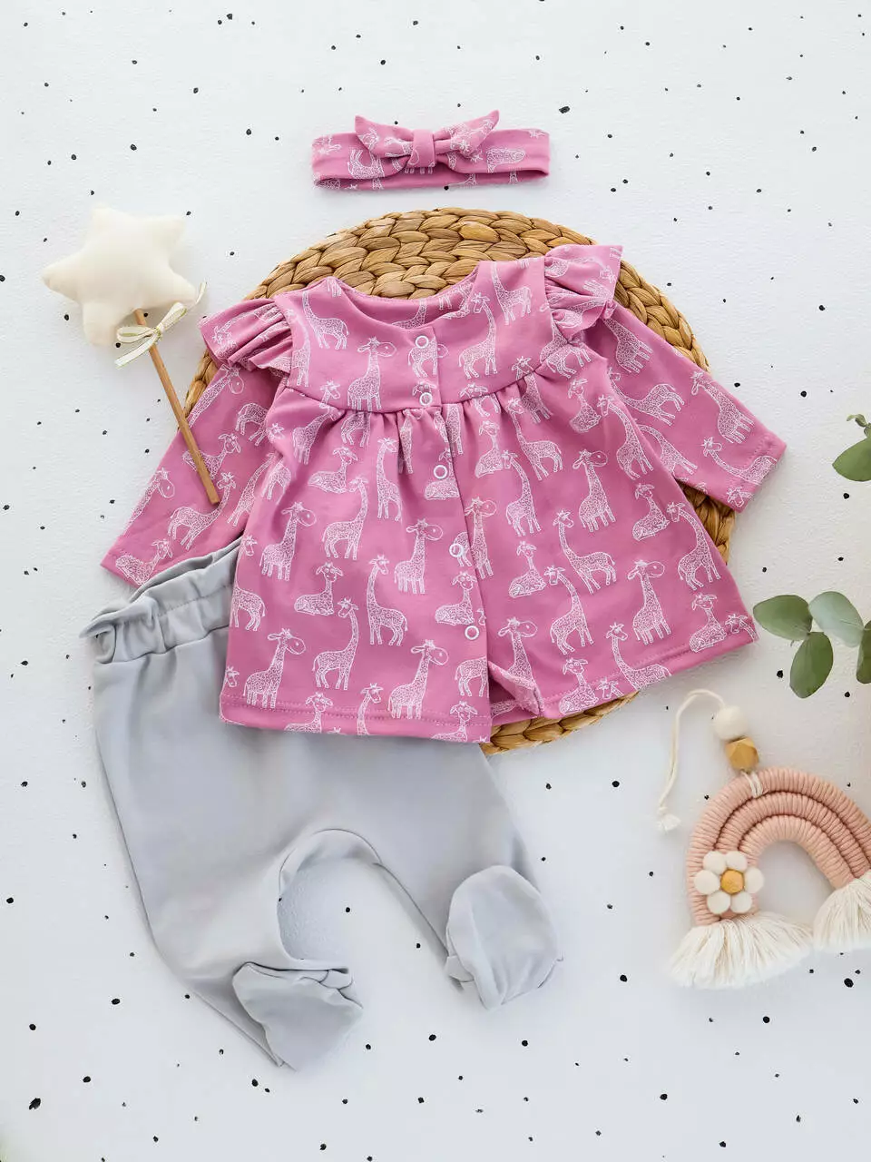 комфорт и стиль. В набор входят туника с рюшами, ползунки и мягкая