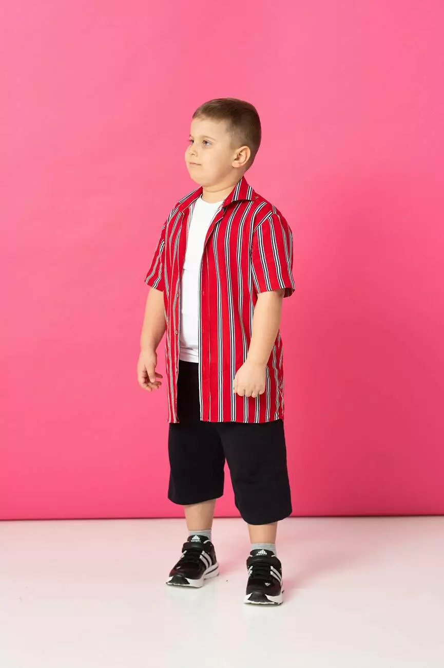 базової, однотонної, шорт вільного крою та смугастої сорочки.