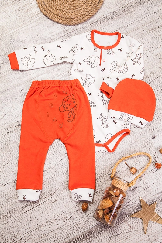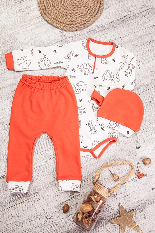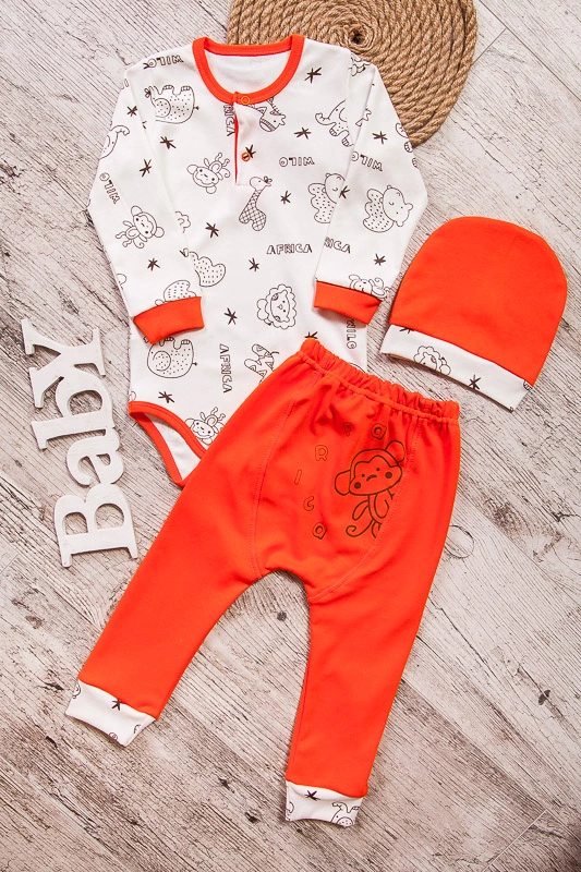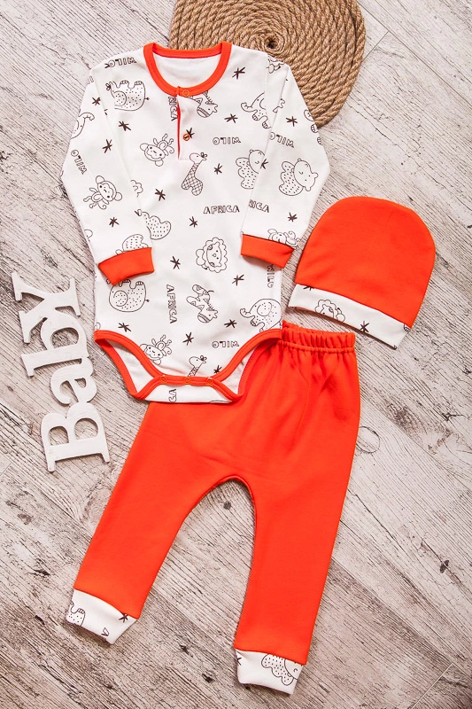 входить боді з довгим рукавом, штанці і шапочка. Штанці відшиті для