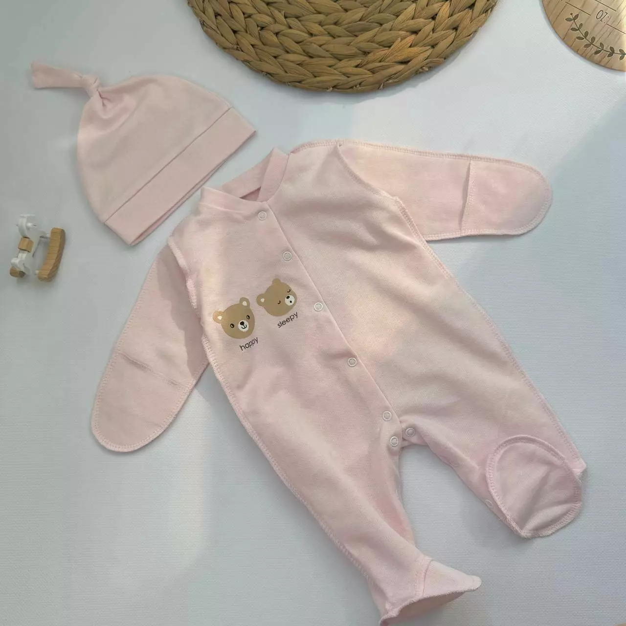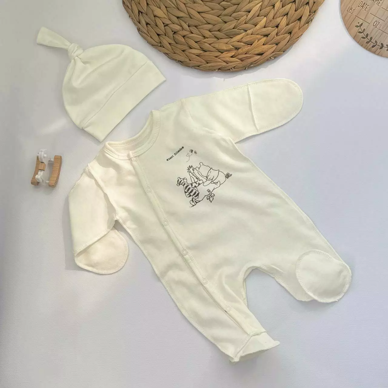 Ищете тёплый и удобный комплект для малыша? Представляем практичный и мягкий комплект из футера с начёсом, в который входят человечек с длинными рукавами и закрытыми ножками, а также шапочка. Идеально подойдёт для холодной погоды, прогулок, сна и даже выписки из роддома.