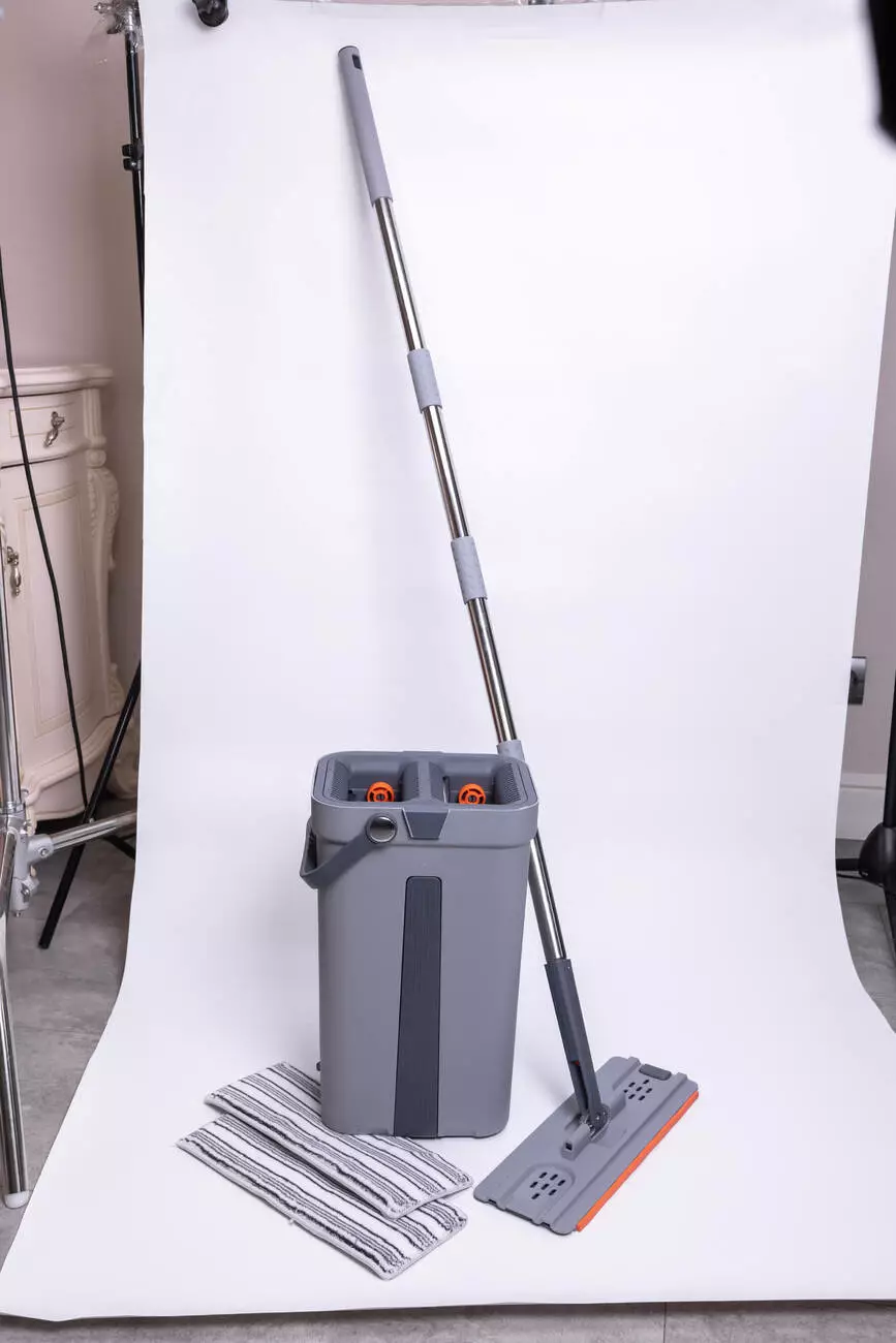 Комплект для прибирання включає плоску швабру та відро з двома відсіками, що забезпечує простий та практичний процес миття підлоги. Один відсік використовується для води, інший – для віджиму, що дозволяє зручно позбавлятися від надлишкової вологи. Завдяки компактним розмірам відро легко розташовується в побутових умовах і не займає багато місця.