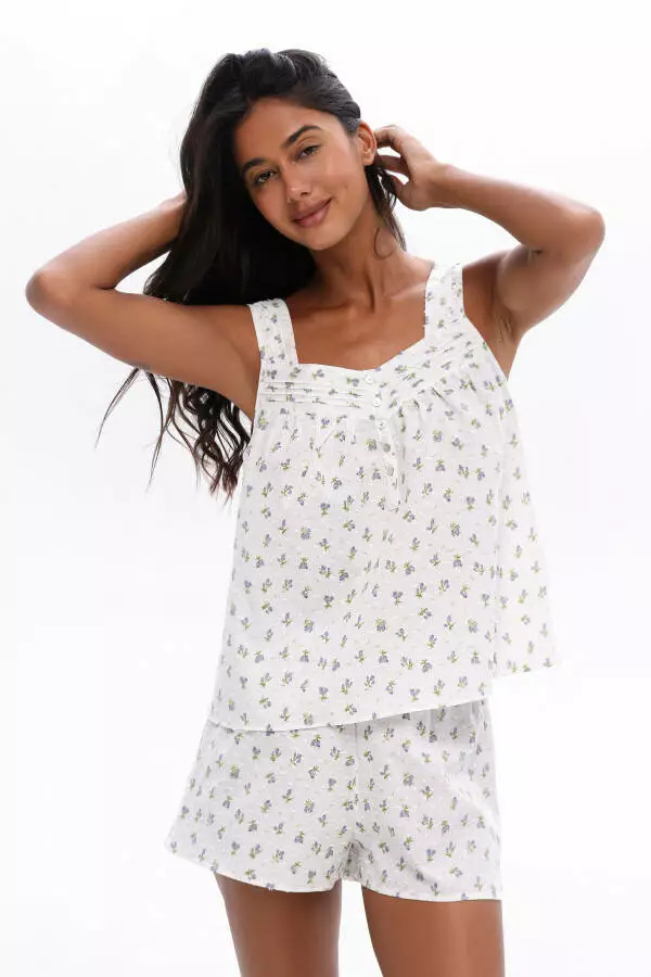 Комплект для сну з батисту складається з майки та шортів з ніжним