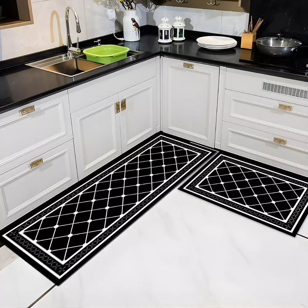 Набір кухонних килимків виконаний у стильному контрастному дизайні