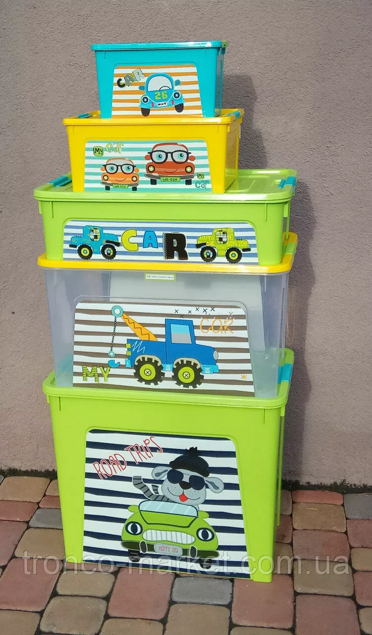 Контейнеры с изображением разной техники, яркие, качественные, без вредных красителей и добавок.