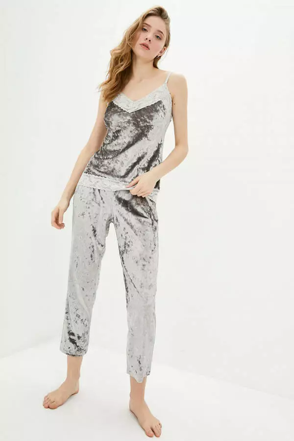Комплект піжамний оксамитовий жіночиймайка та штани German Volf сірий L (46) 100058