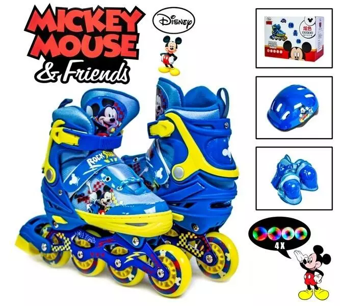 <p> Стильный и надежный<strong> </strong>комплект<strong> </strong><strong>"Disney. Mickey Mouse"</strong> станет прекрасным сюрпризом для мальчишки, а также девочки. Выгодность приобретения - в том, что Вы одновременно получаете не только ролики, но и стильный шлем и защиту для коленей, локтей и ладоней. Расцветка з изображением диснеевских героев делают эту модель очень привлекательной для детишек . <strong>Все колеса светятся при катании!</strong></p><br /> <p>Описание и преимущества Комплекта <strong>"Disney"</strong>:</p><br /> <ul><br /> <li>торговая марка <strong>"Disney"</strong>;</li><br /> <li>стелька 20,5-23,5 см</li><br /> <li>надежное закрепление стопы и безопасность - за счет пяточного ремня и бакли AUTОLOCK;</li><br /> <li>воздухопроницаемость и комфорт - комбинация мягкого кожзама и "сеточки" в основе ботинка;</li><br /> <li>в комплекте роликов - специальная система торможения;</li><br /> <li>правильная посадка и ортопедический эффект - оболочка и манжета из полипропилена;</li><br /> <li>в основе роликов - прочная алюминиевая рама;</li><br /> <li>надежные и качественные подшипники ABEC-7;</li><br /> <li>возможность регулировки на 4 полных размера - кнопочная система;</li><br /> <li>бесшумные светящиеся PU-колеса из полиуретана (размер 64*24 мм, жесткость 82А);</li><br /> <li>допустимые размеры роликов: от 29 до 33</li><br /> <li>расцветка: голубой.</li><br /> </ul><br /> <p>Стильный и красивый Комплект<strong> "Disney" </strong>купить в нашем интернет-магазине проще простого: Вам нужно только выбрать товар, нажимайте кнопку "Купить" или "В корзину" и заполнить несложную форму заказа. Через пару дней можно получать покупку на складе курьерской службы.</p><br />