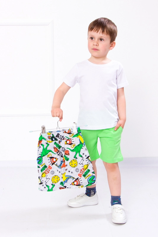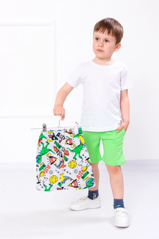 Шорти - це незамінний літній елемент одягу, який дуже подобається дітям. Вони дозволяють дитині активно грати, не обмежуючи рухів. Якщо ваша дитина - непосида, тоді комплект шорт від ТМ "Трикотажний Край" стане практичним придбанням. Виріб призначений для хлопчика. Шорти оснащені широкою і м'якою резинкою на поясі. Дві бічні кишені дозволяють дитині взяти з собою на прогулянку улюблений гаджет або заховати ключі. Шорти пошиті з м'якої, приємної до тіла, еластичної тканини, в складі якої міститься 100% натуральної бавовни. Полотно не кошлатиться і не розтягується, забезпечуючи тривалу службу своєму стильному власникові.