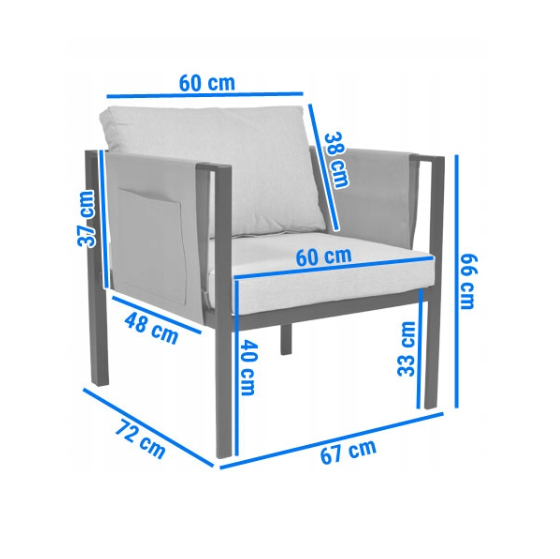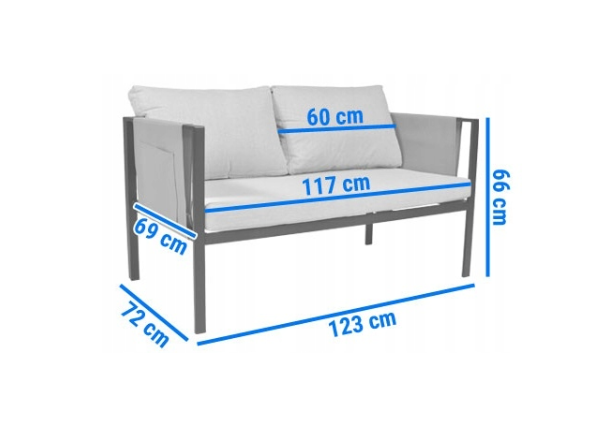 - Подушки сидіння: 60 × 69 × 7 см (2 шт.),