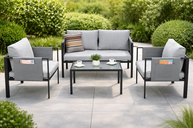 комплекті: двомісний диван, 2 садові крісла, кавовий
