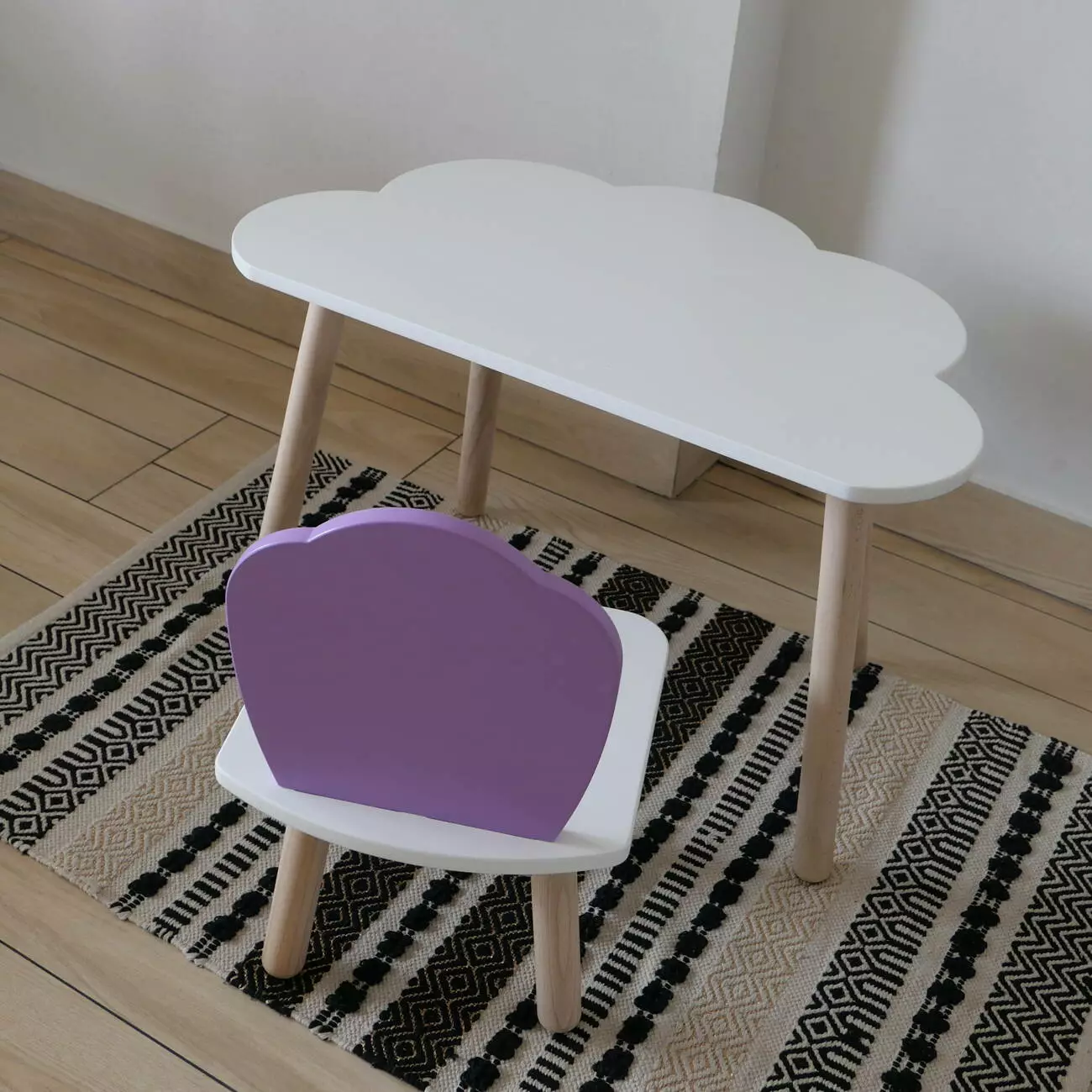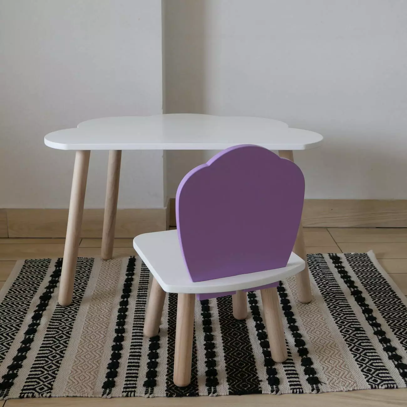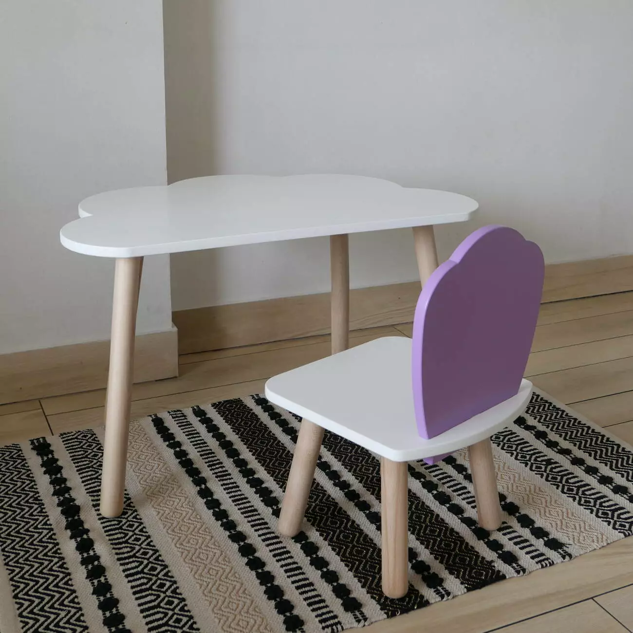 Комплект стіл та стул дитячий ChildWood - Set Стіл білий хмаринка + стілець білий бузковий Мушля (Фанера)