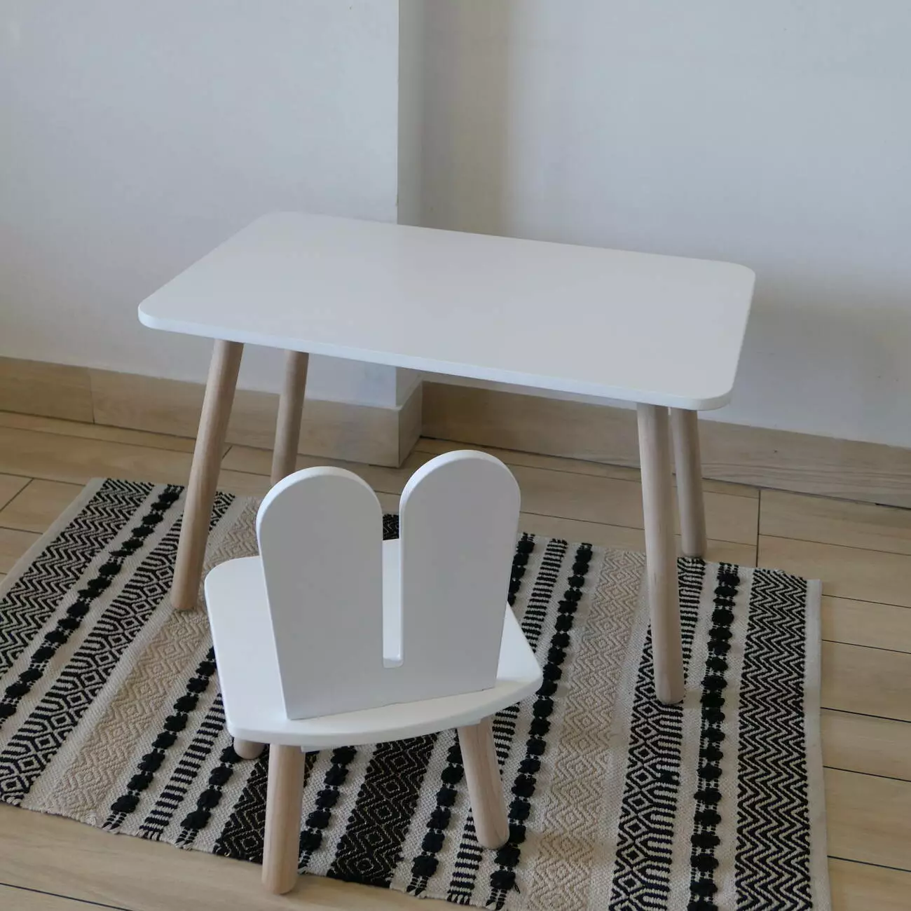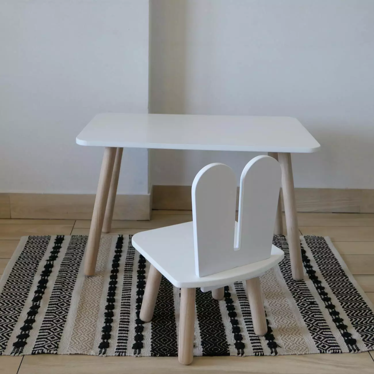 Комплект стіл та стул дитячий ChildWood - Set Стіл білий прямокутний + стілець білий Зайчик (Фанера)
