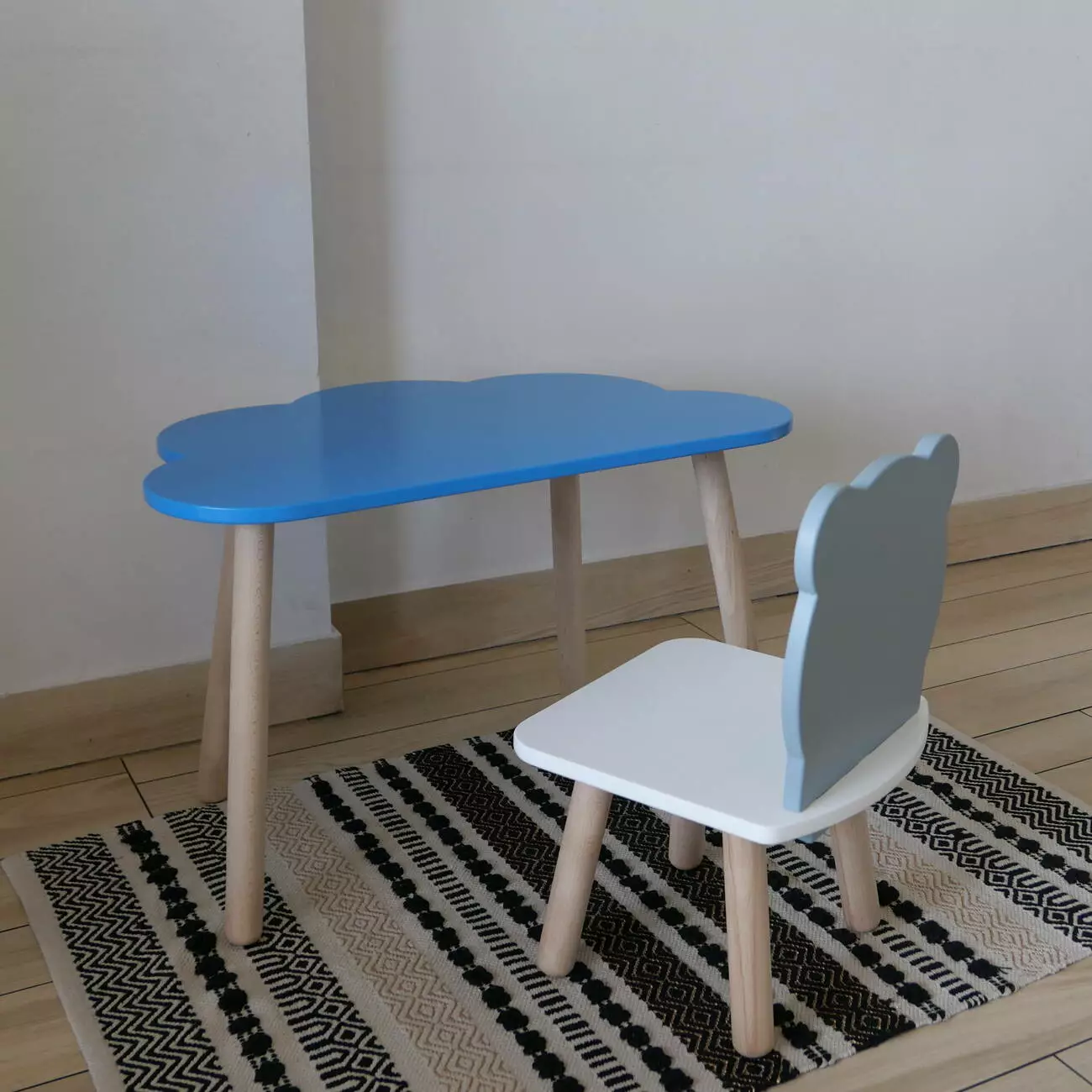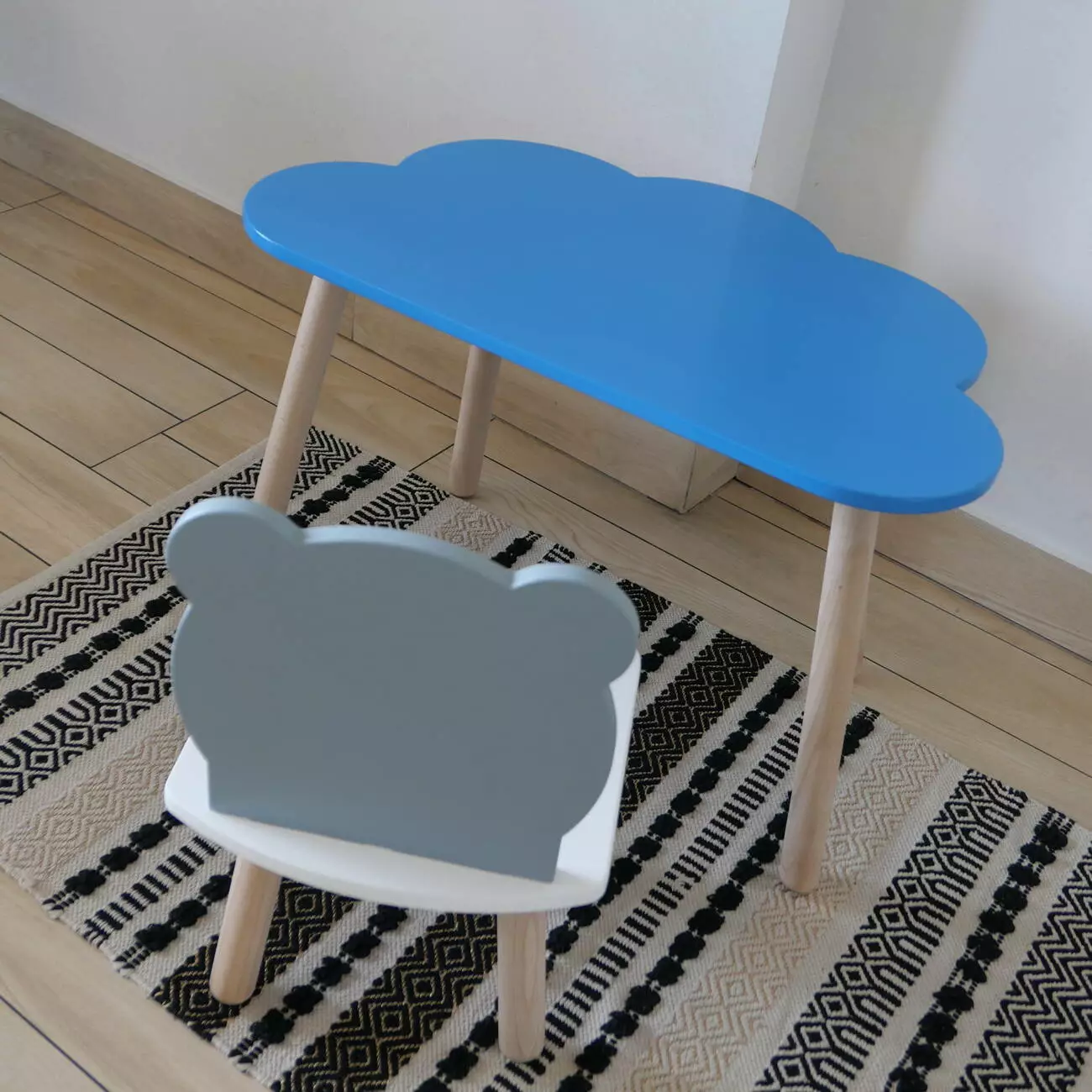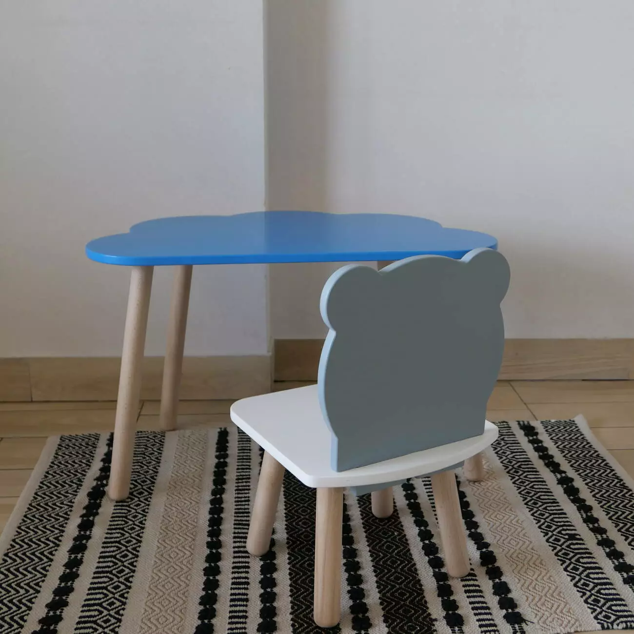 Комплект стіл та стул дитячий ChildWood - Set Стіл блакитний хмаринка + стілець білий сірий Ведмедик (Фанера)