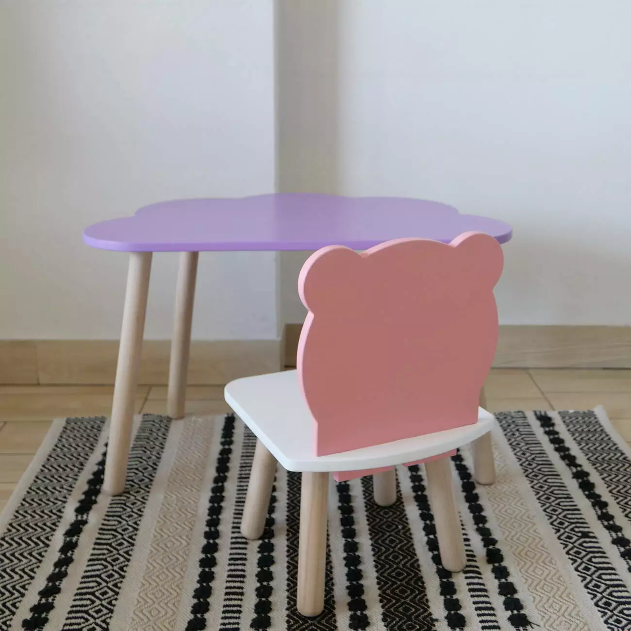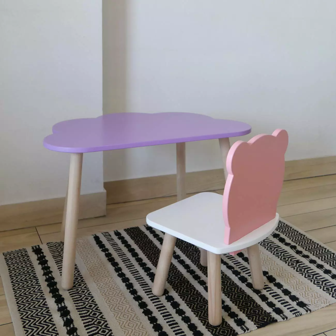 Комплект стіл та стул дитячий ChildWood - Set Стіл бузковий хмаринка + стілець білий рожевий Ведмедик (Фанера)