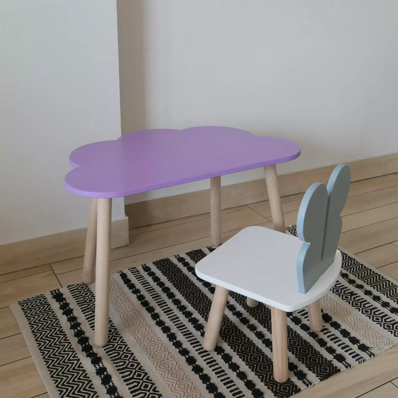 Комплект стіл та стул дитячий ChildWood - Set Стіл бузковий хмаринка + стілець білий сірий Метелик (Фанера)