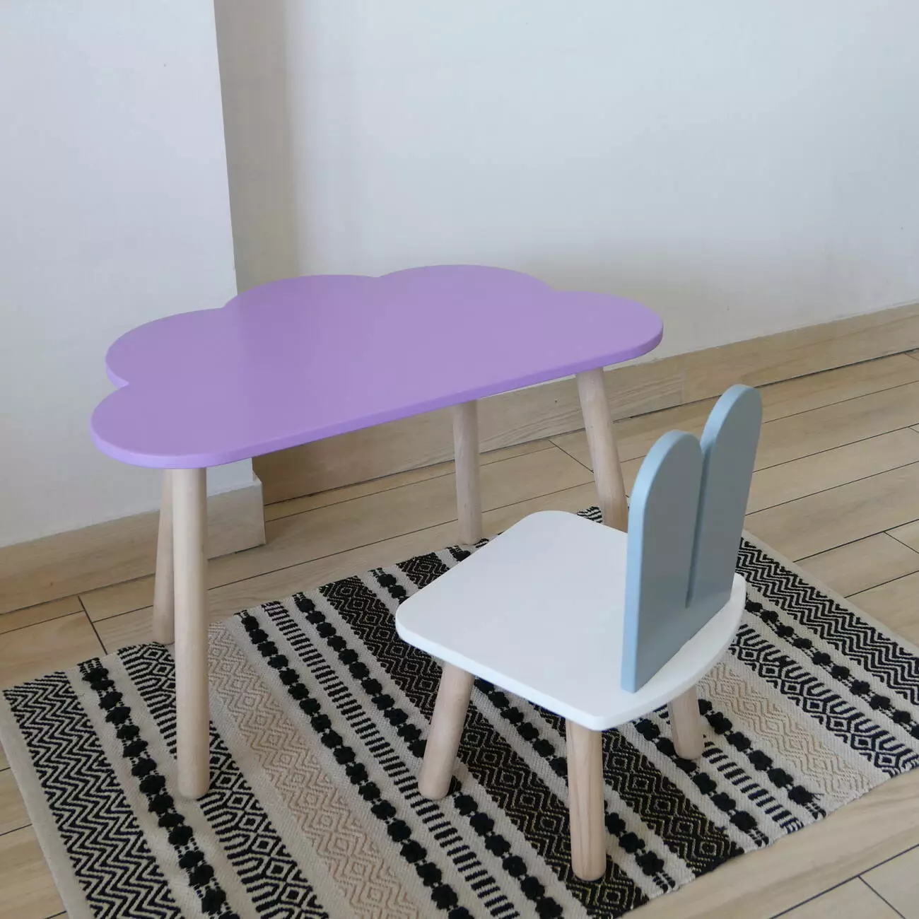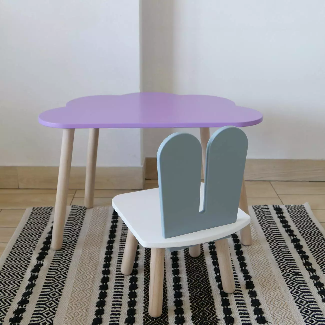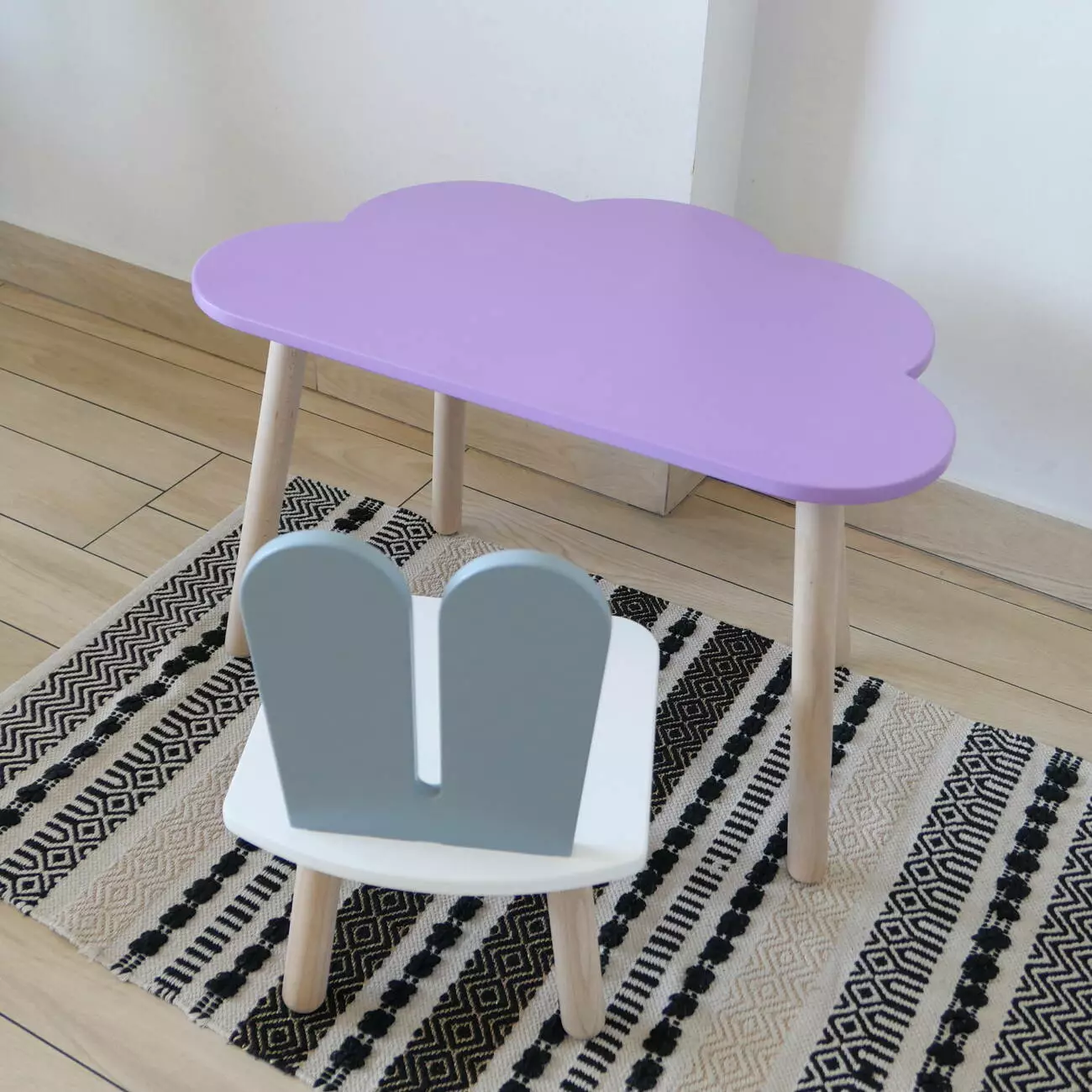 Комплект стіл та стул дитячий ChildWood - Set Стіл бузковий хмаринка + стілець білий сірий Зайчик (Фанера)