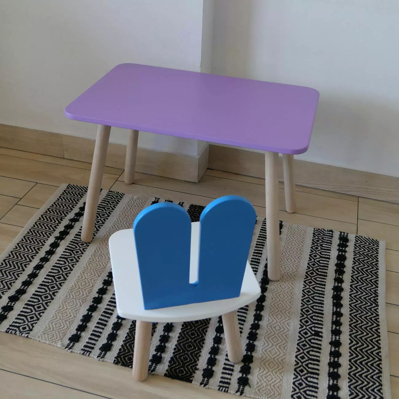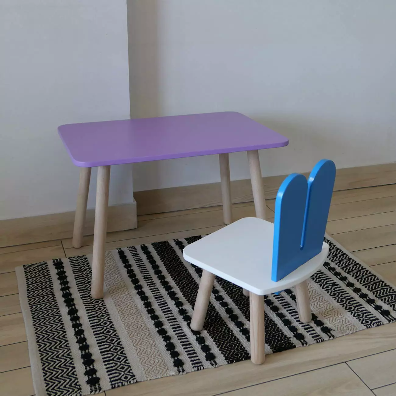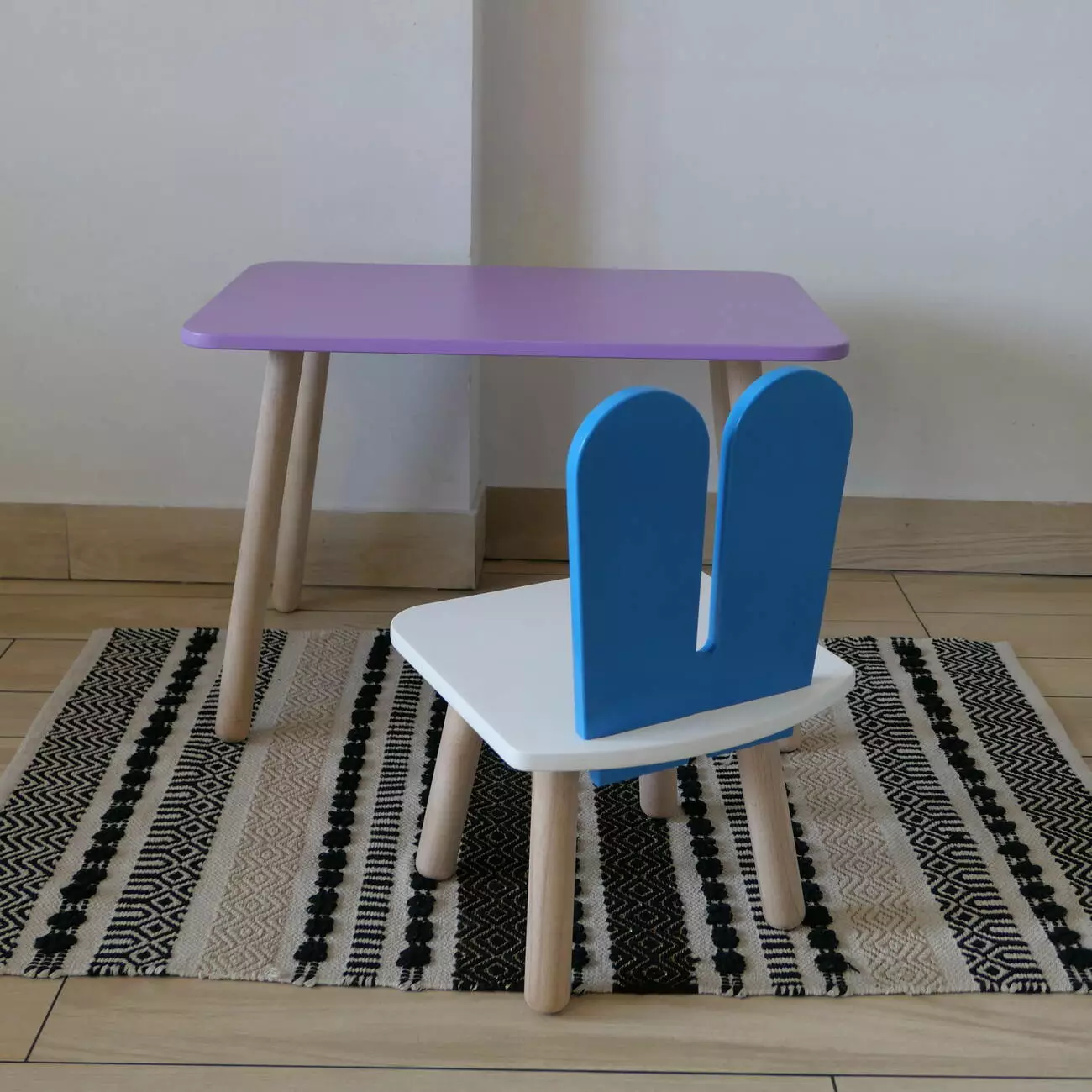 Комплект стіл та стул дитячий ChildWood - Set Стіл бузковий прямокутний + стілець білий блакитний Зайчик (Фанера)