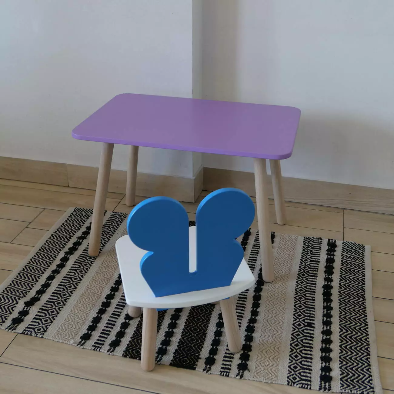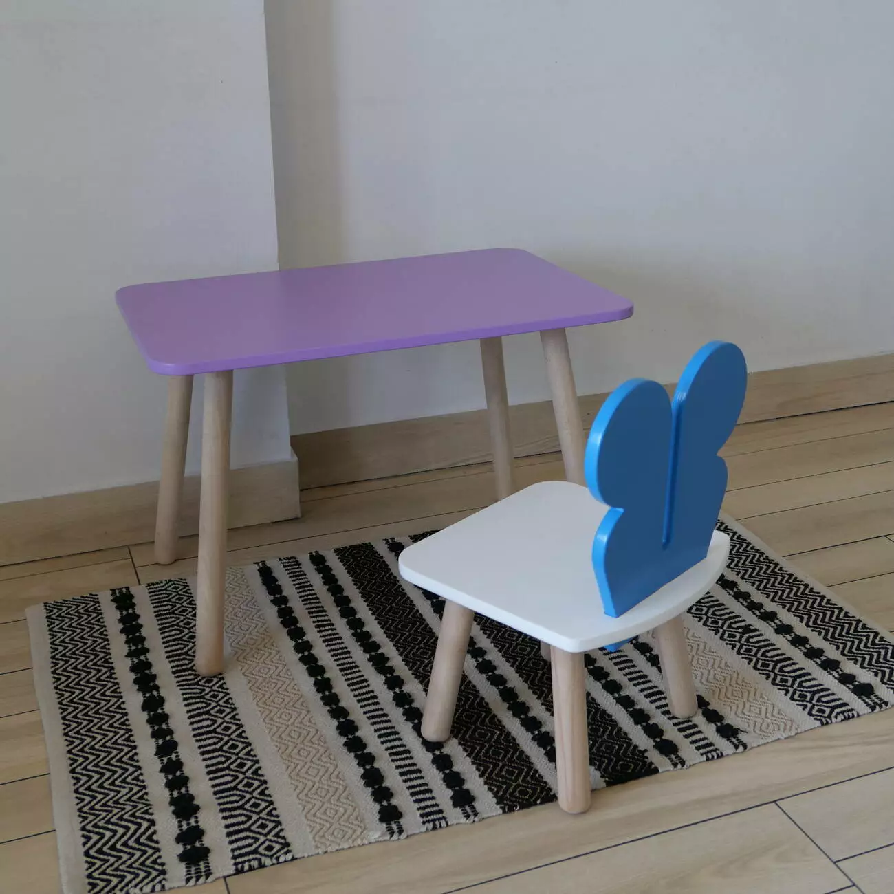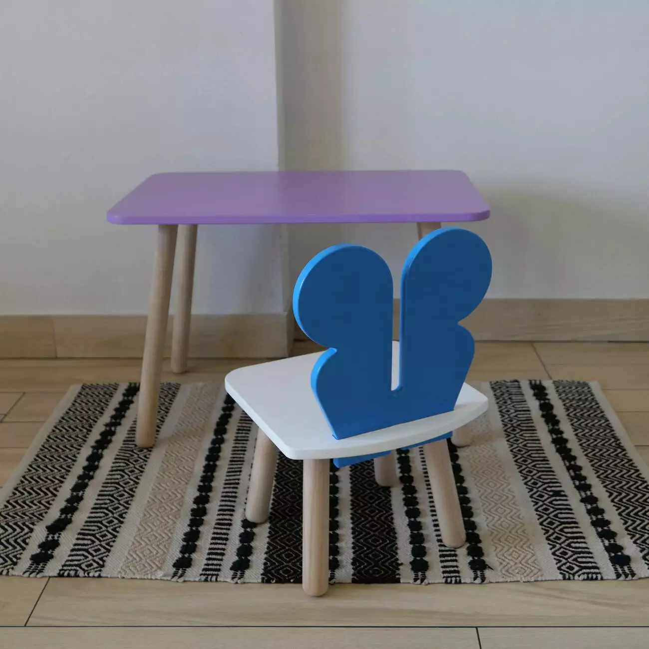 Комплект стіл та стул дитячий ChildWood - Set Стіл бузковий прямокутний + стілець білий блакийний Метелик (Фанера)