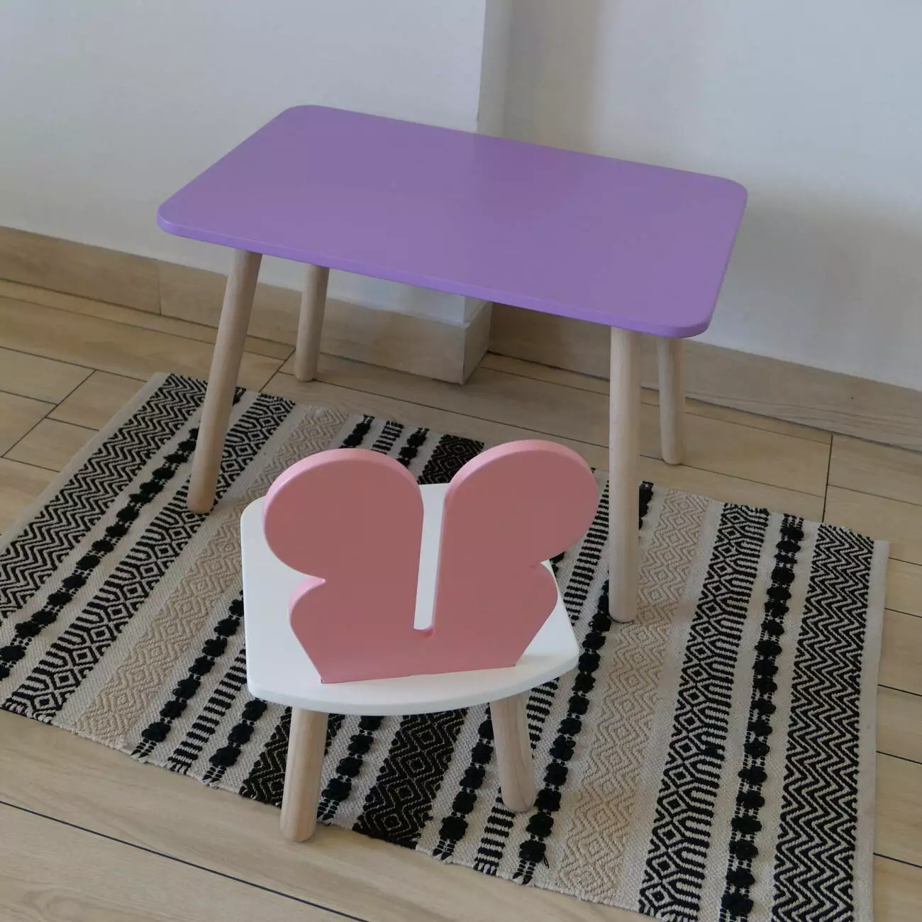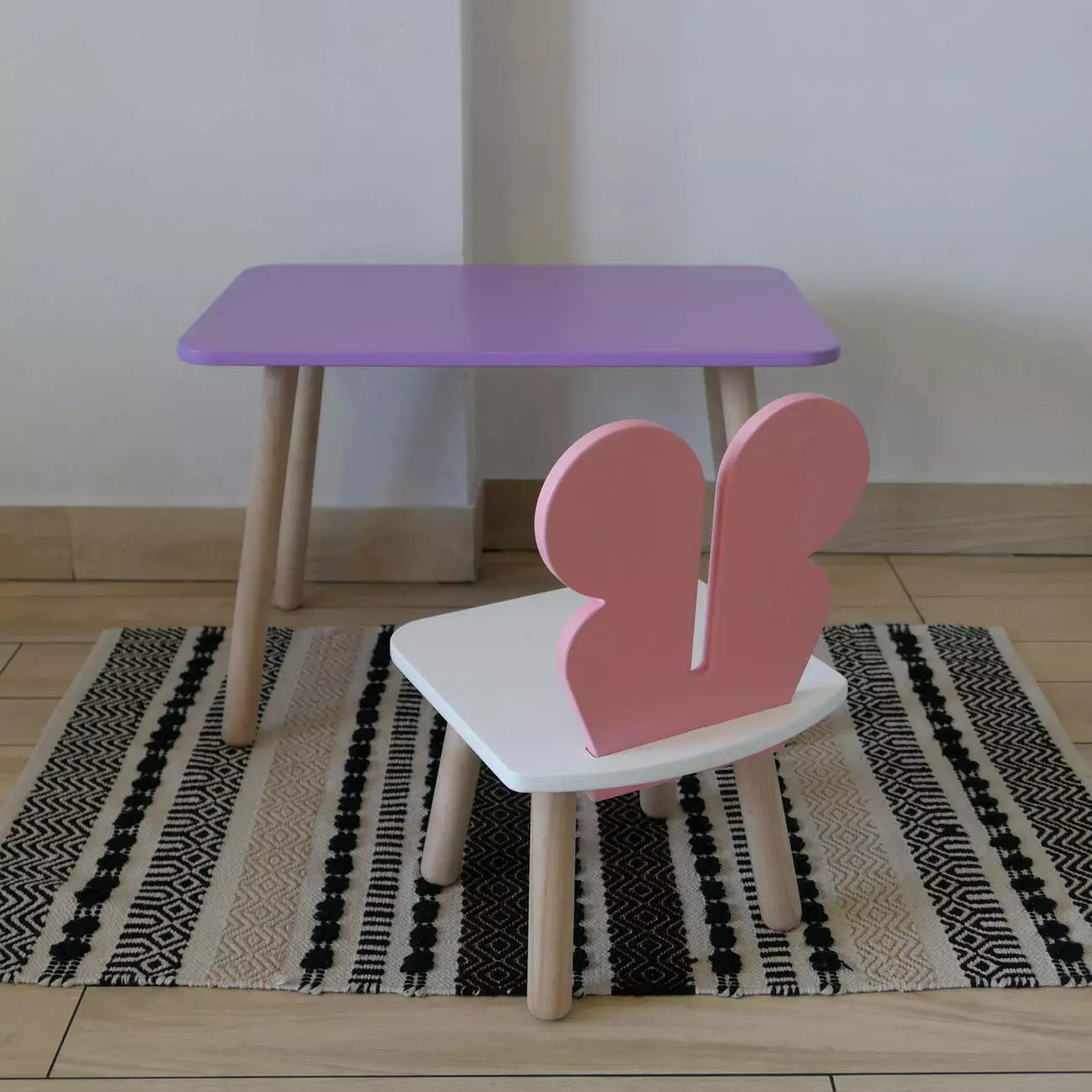 Комплект стіл та стул дитячий ChildWood - Set Стіл бузковий прямокутний + стілець білий рожевий Метелик (Фанера)
