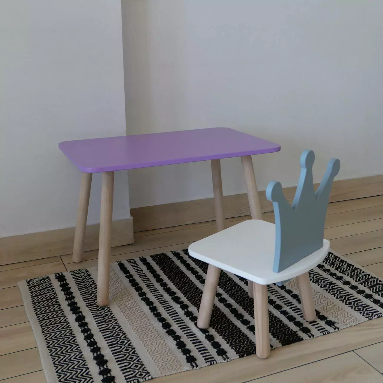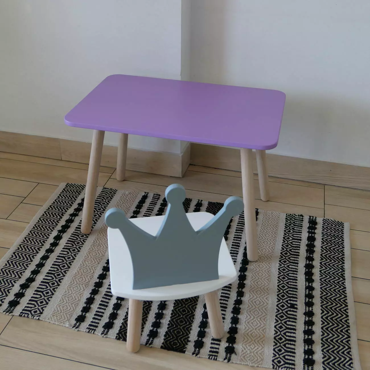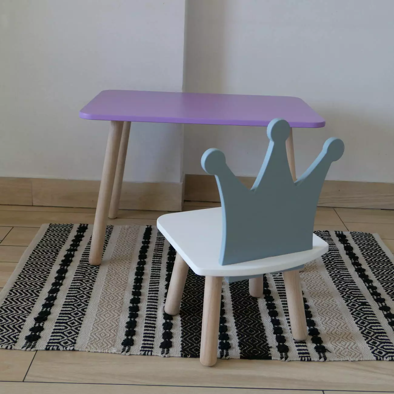 Комплект стіл та стул дитячий ChildWood - Set Стіл бузковий прямокутний + стілець білий сірий Корона (Фанера)