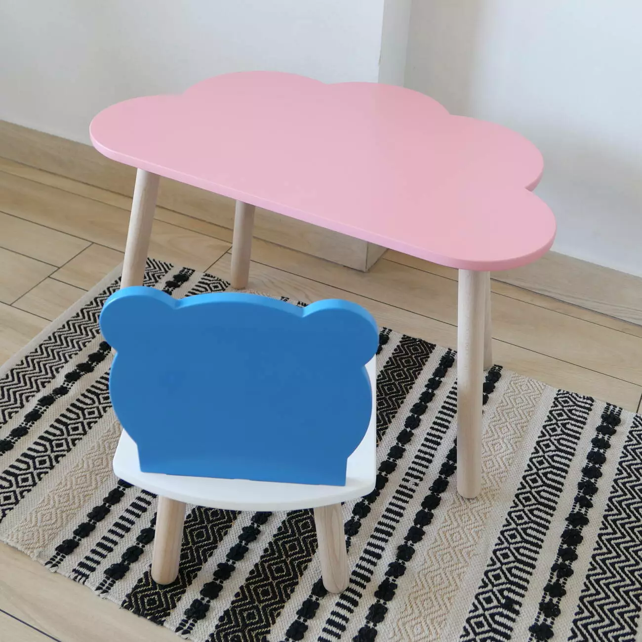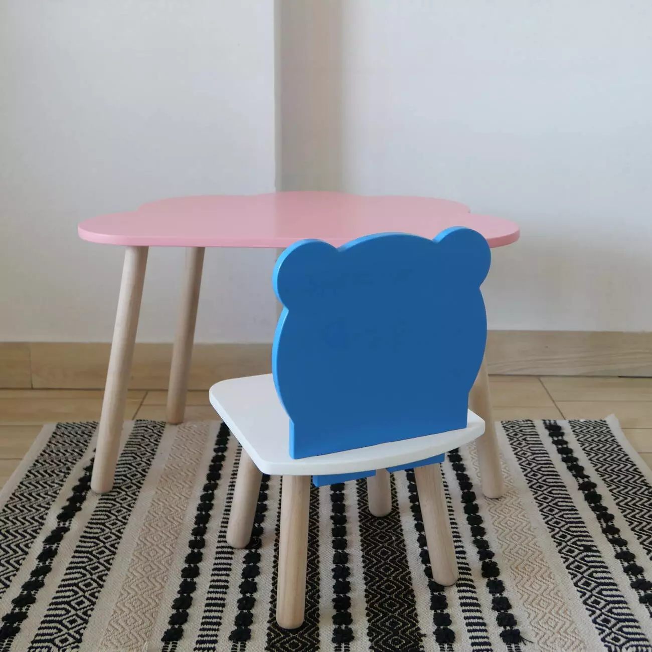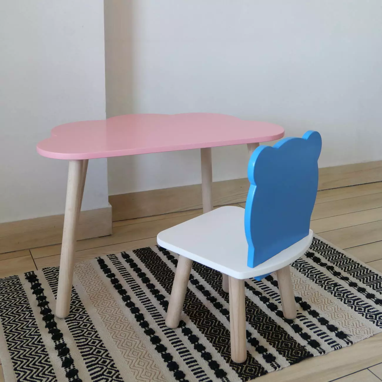 Комплект стіл та стул дитячий ChildWood - Set Стіл рожевий хмаринка + стілець білий блакитний Ведмедик (Фанера)