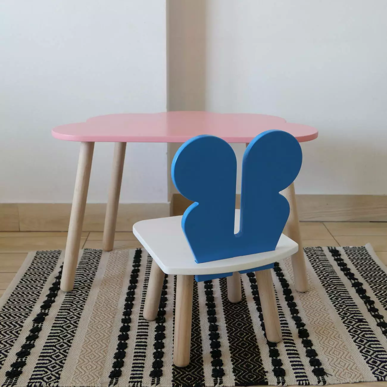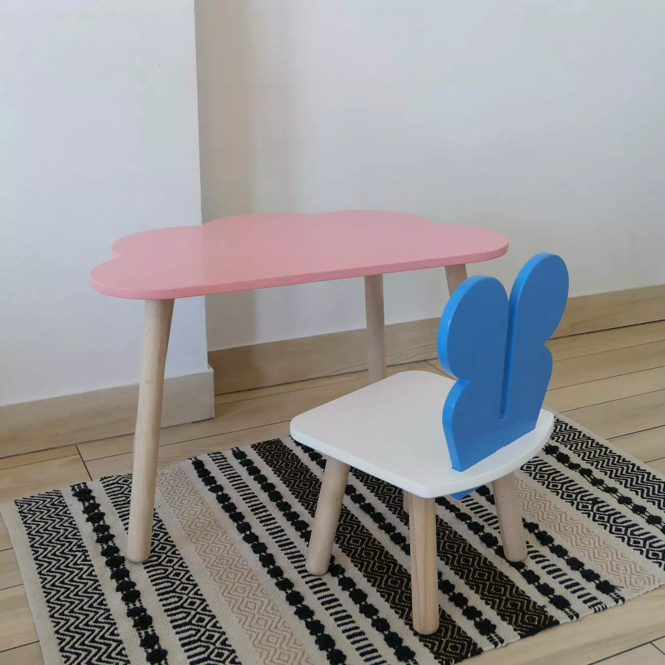 Комплект стіл та стул дитячий ChildWood - Set Стіл рожевий хмаринка + стілець білий блакийний Метелик (Фанера)