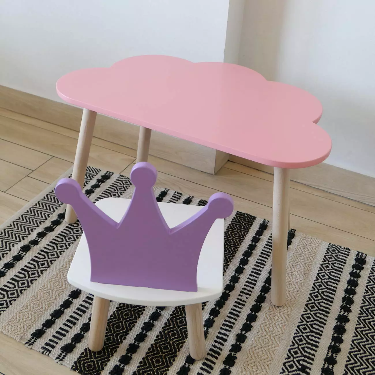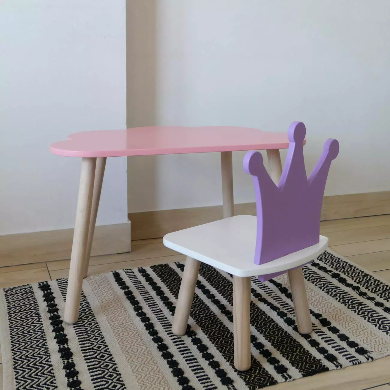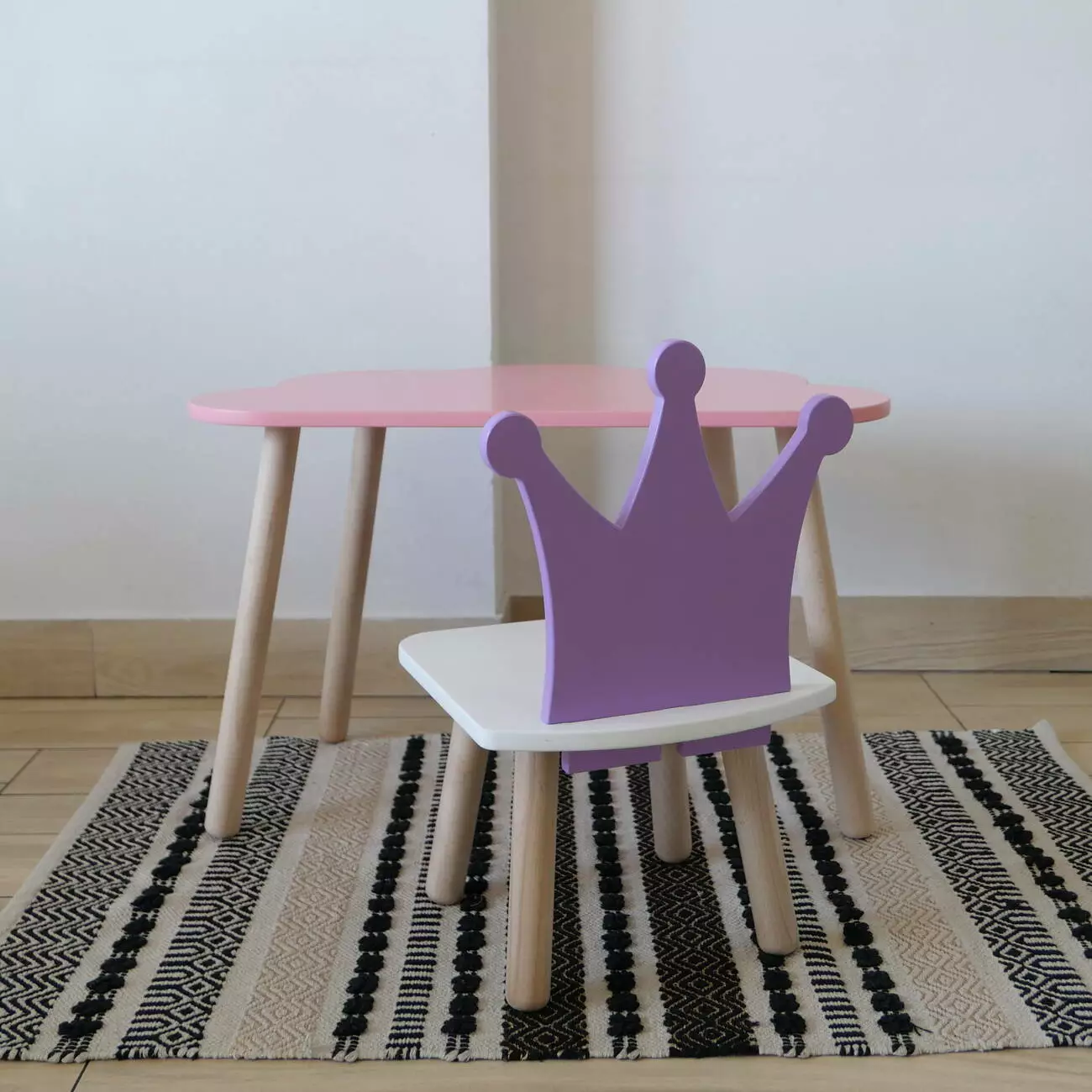 Комплект стіл та стул дитячий ChildWood - Set Стіл рожевий хмаринка + стілець білий бузковий Корона (Фанера)
