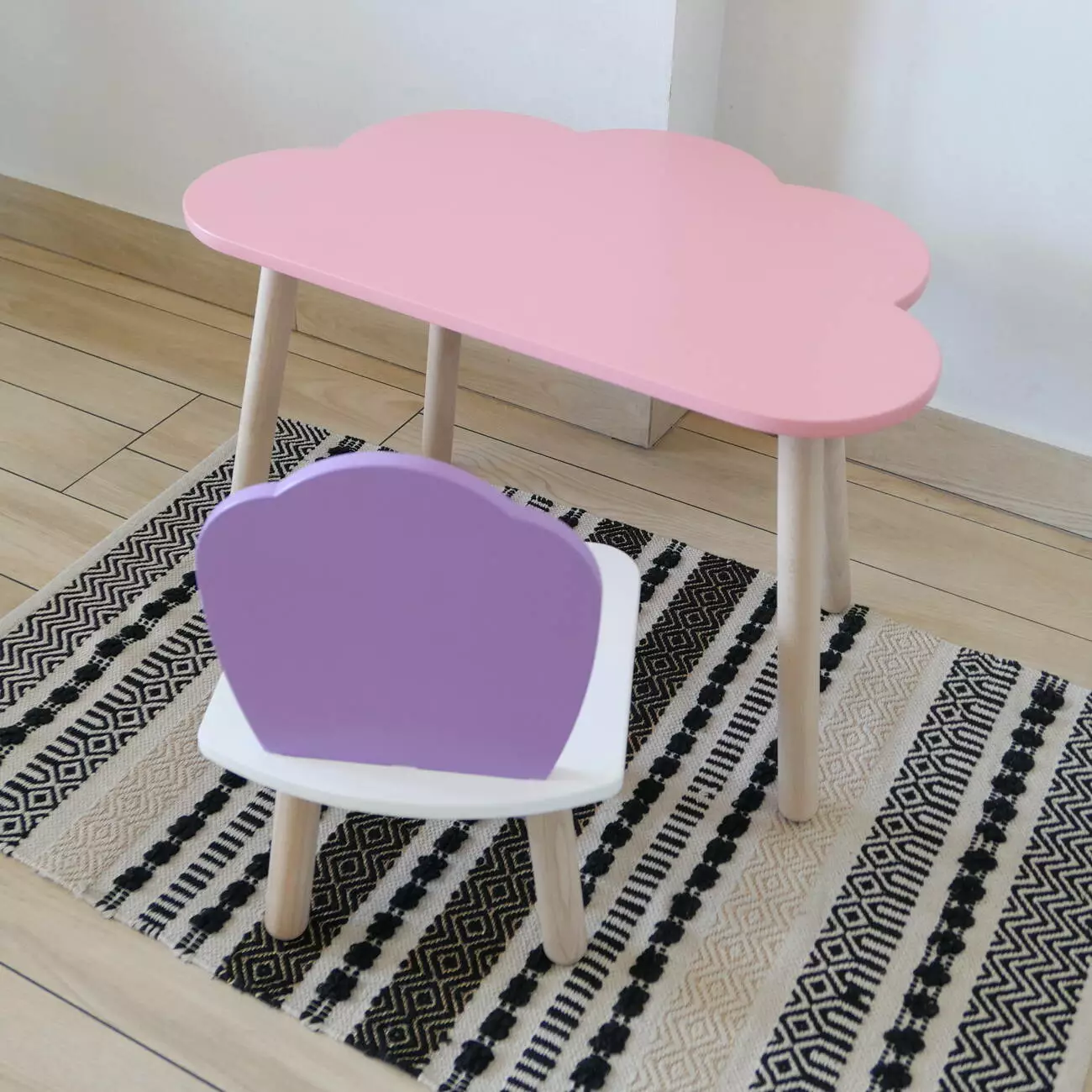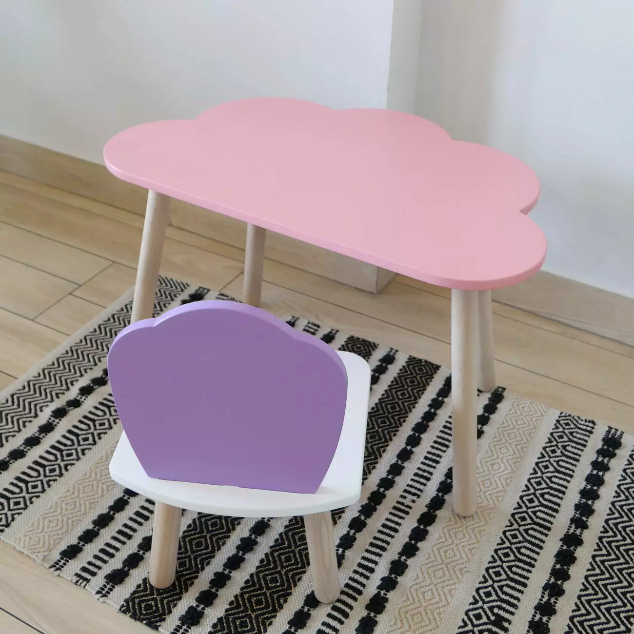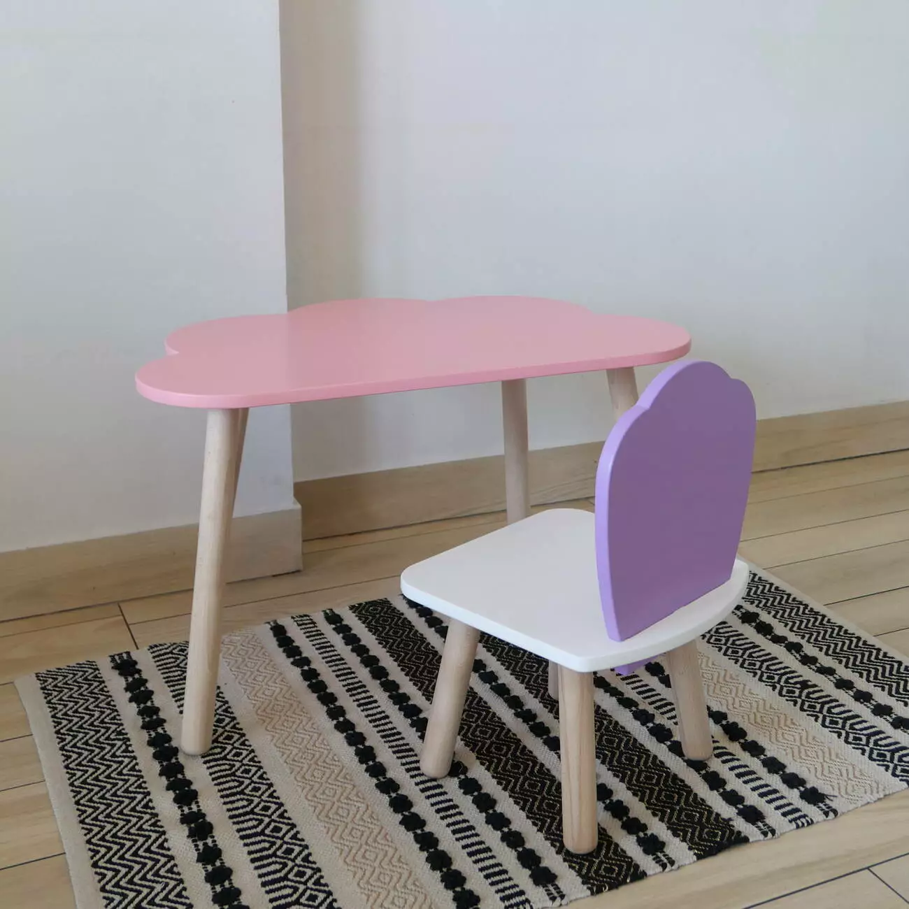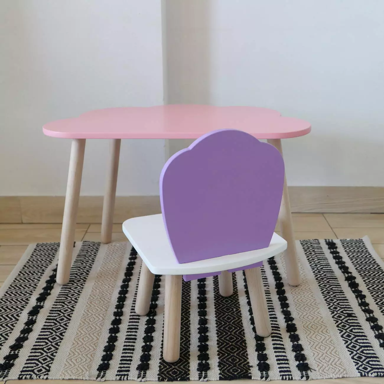 Комплект стіл та стул дитячий ChildWood - Set Стіл рожевий хмаринка + стілець білий бузковий Мушля (Фанера)