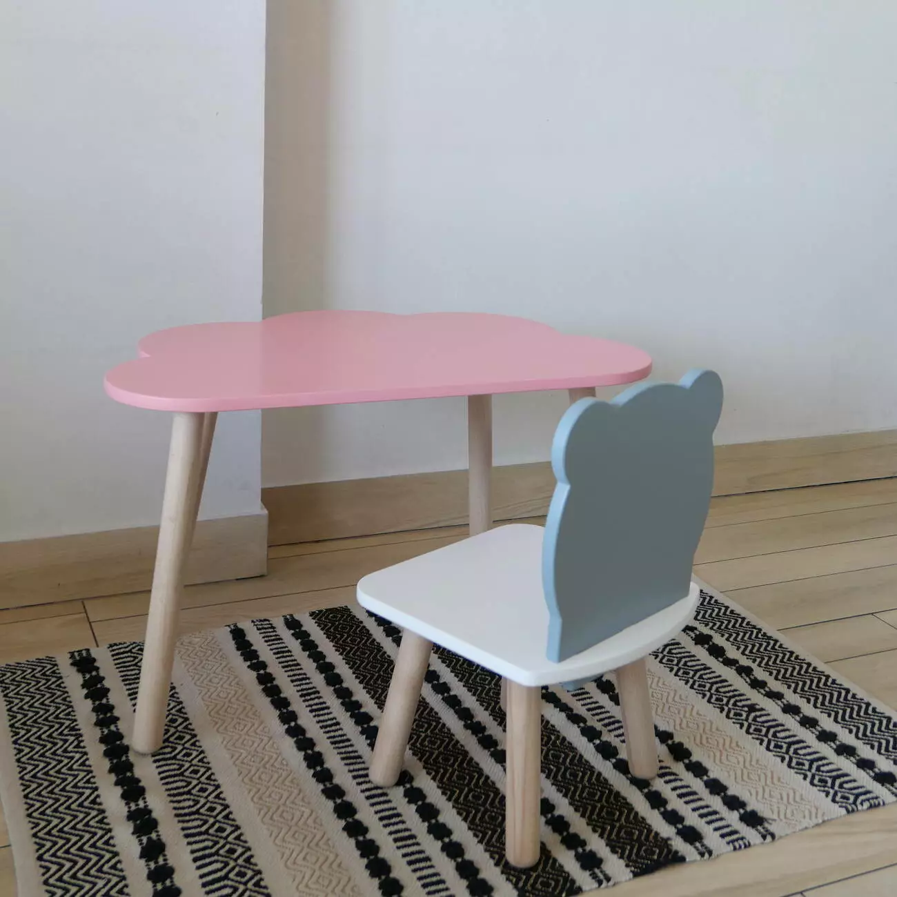 Комплект стіл та стул дитячий ChildWood - Set Стіл рожевий хмаринка + стілець білий сірий Ведмедик (Фанера)