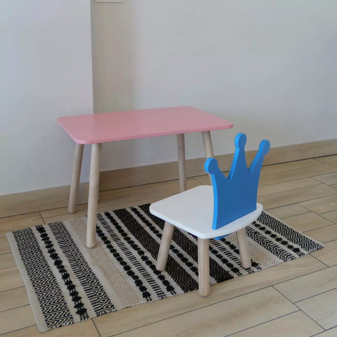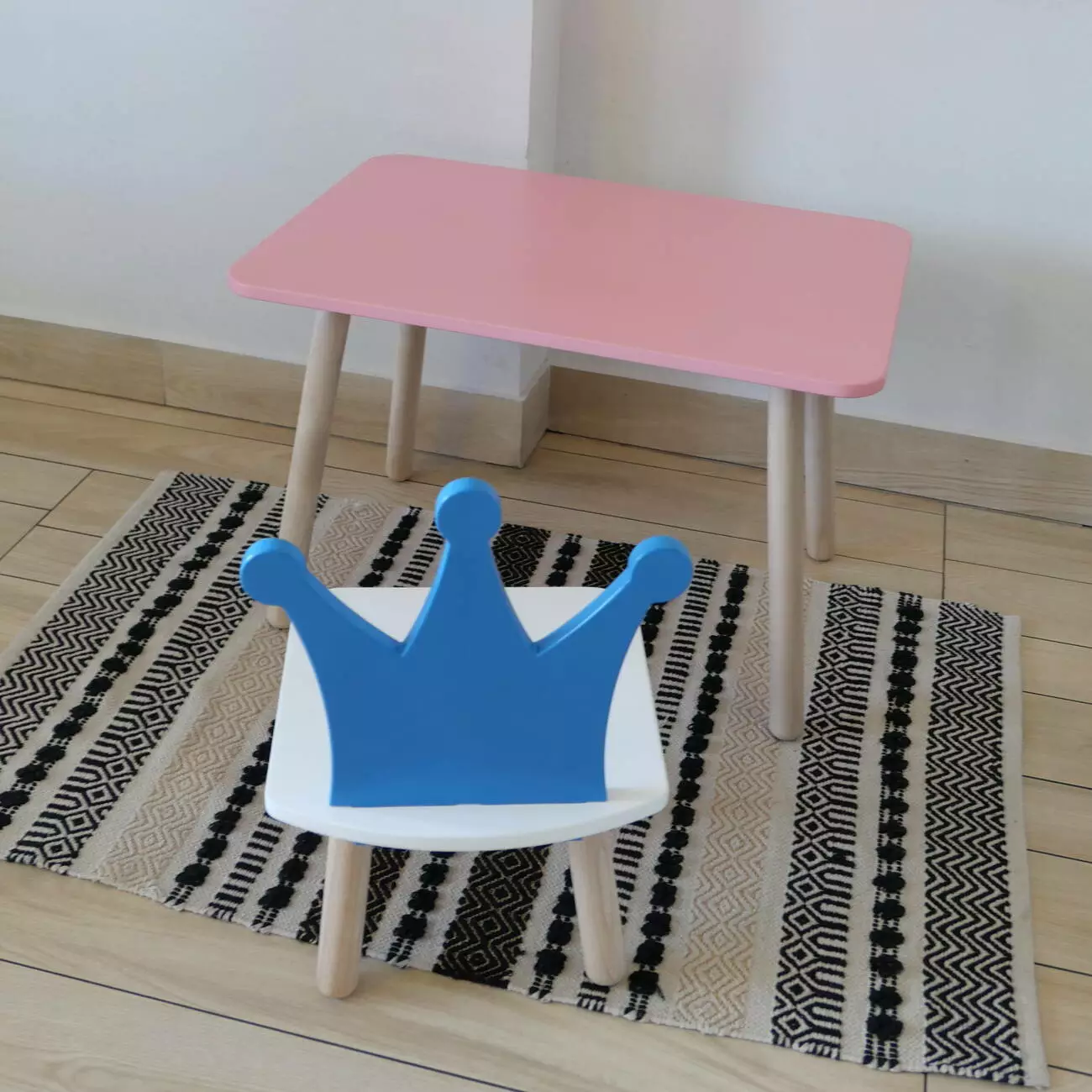 Комплект стіл та стул дитячий ChildWood - Set Стіл рожевий прямокутний + стілець білий блакитний Корона (Фанера)