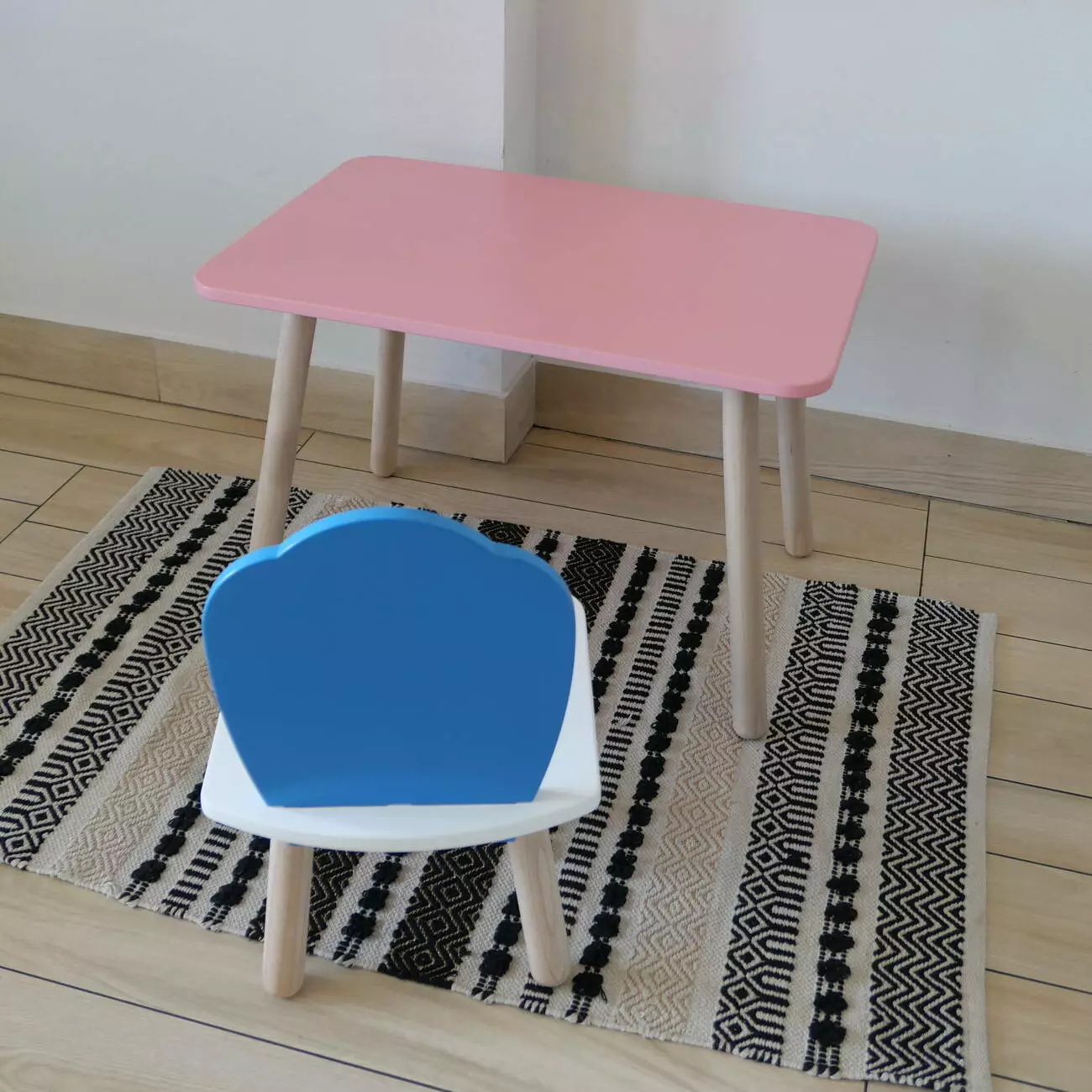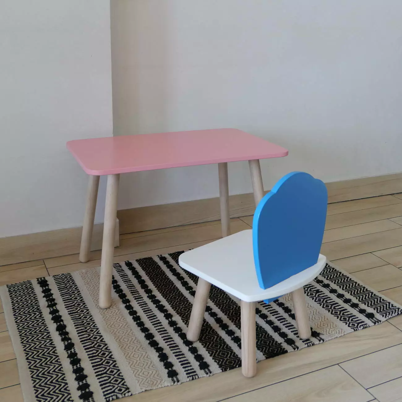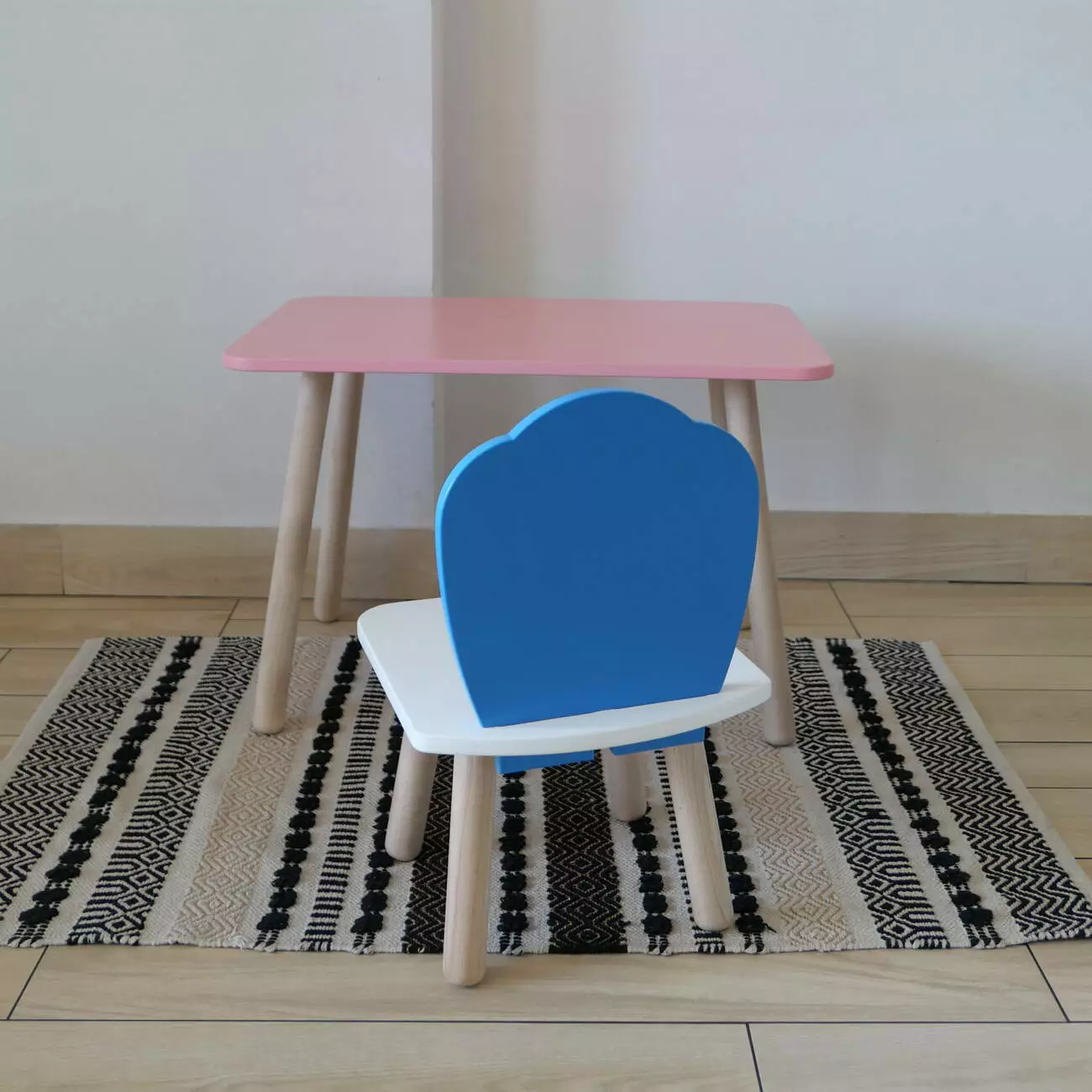 Комплект стіл та стул дитячий ChildWood - Set Стіл рожевий прямокутний + стілець білий блакитний Мушля (Фанера)