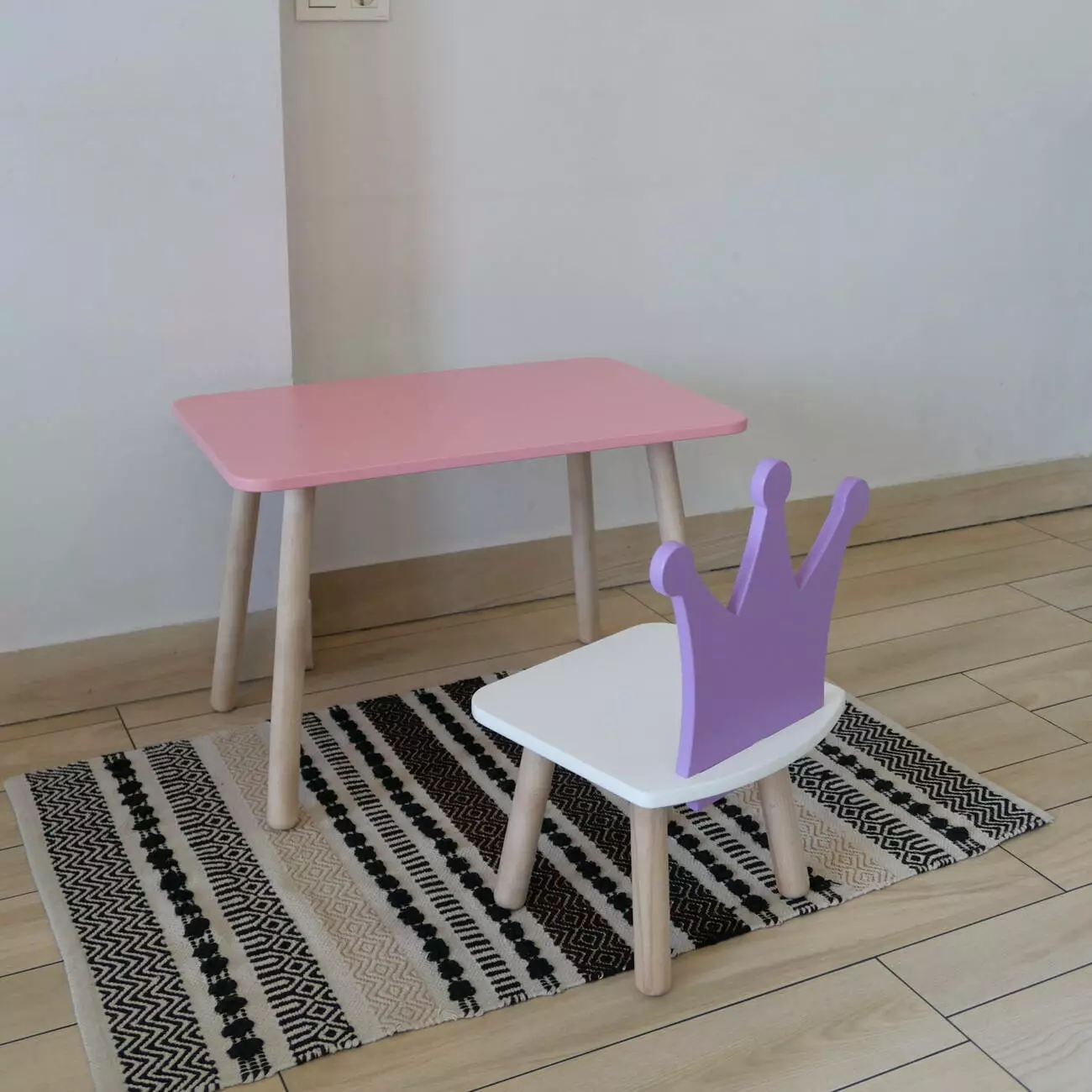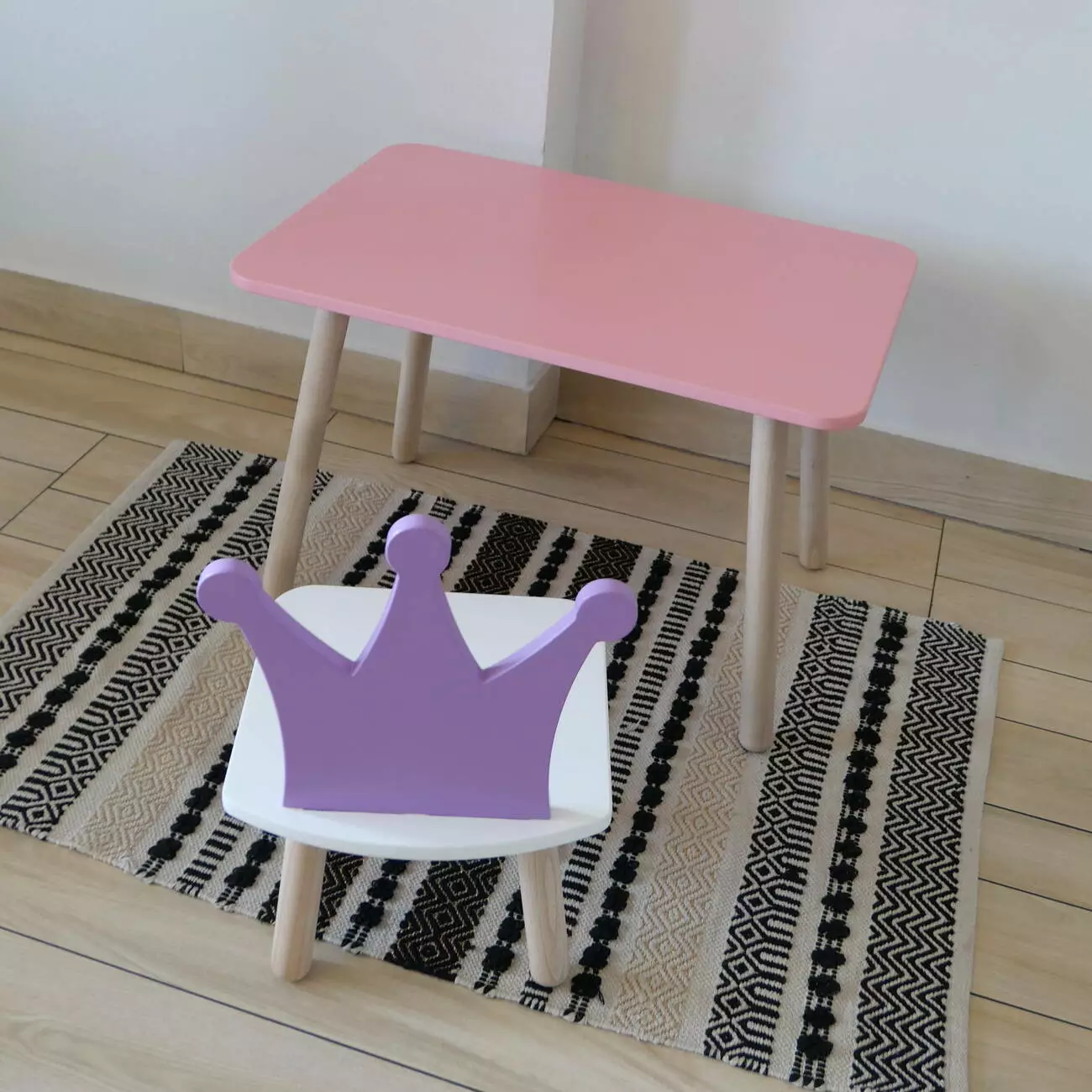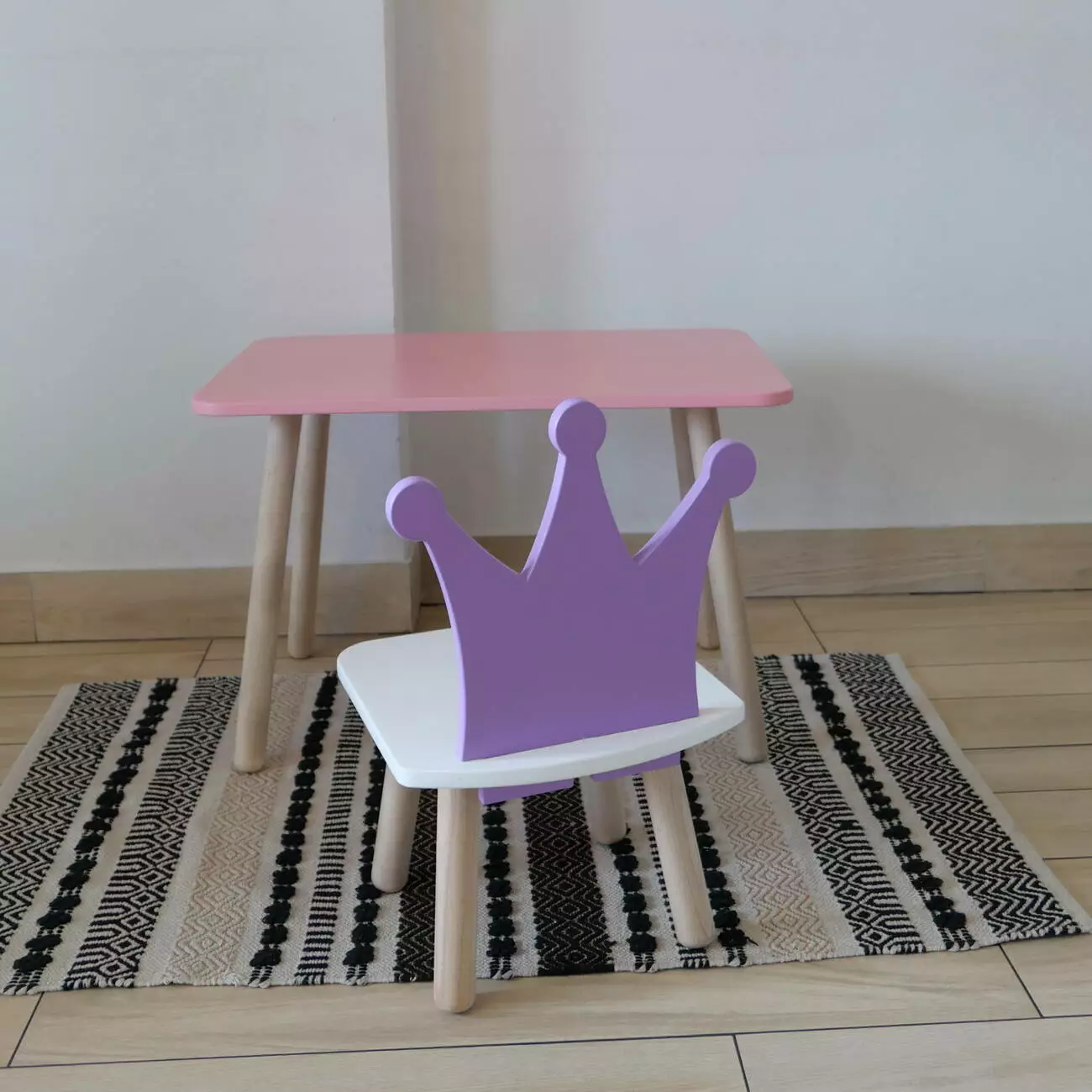 Комплект стіл та стул дитячий ChildWood - Set Стіл рожевий прямокутний + стілець білий бузковий Корона (Фанера)