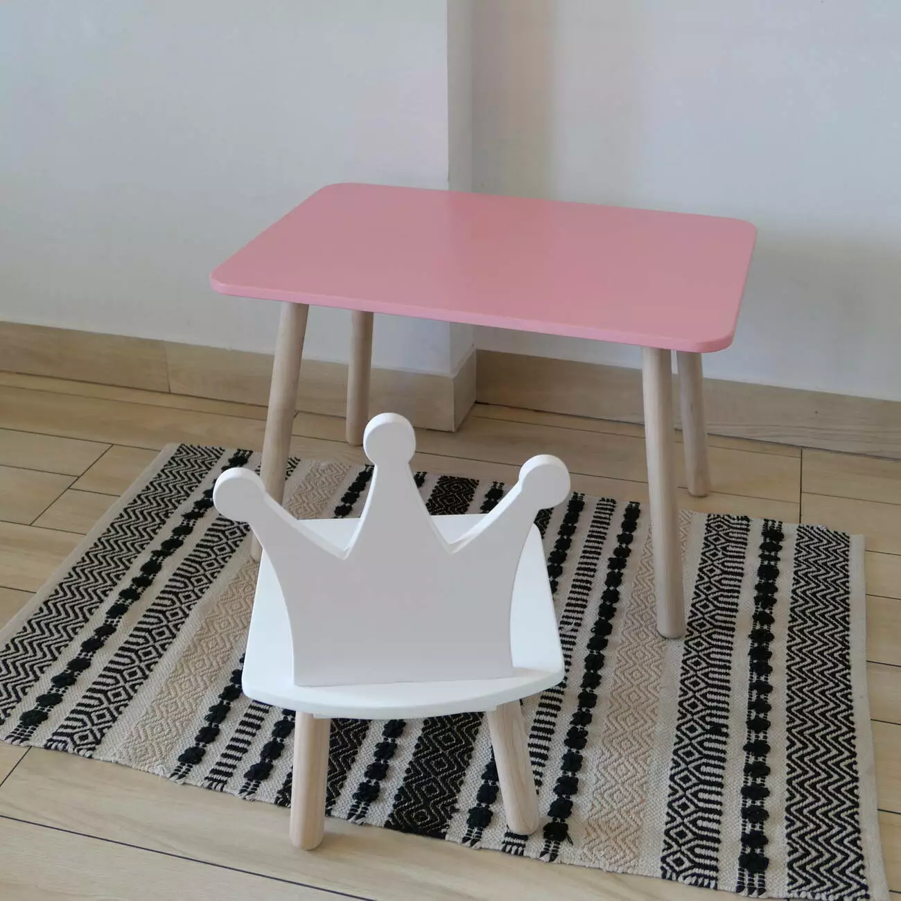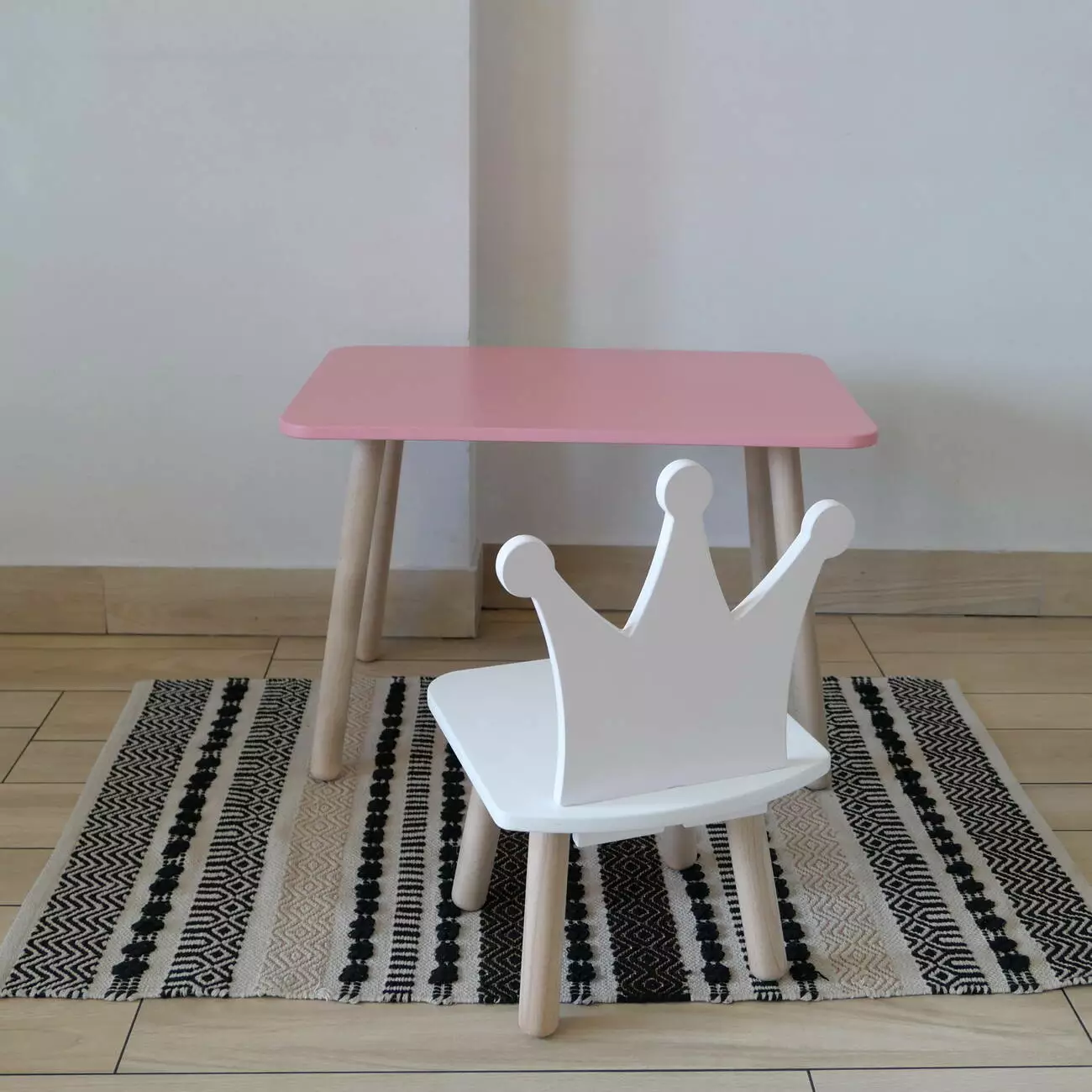 Комплект стіл та стул дитячий ChildWood - Set Стіл рожевий прямокутний + стілець білий Корона (Фанера)