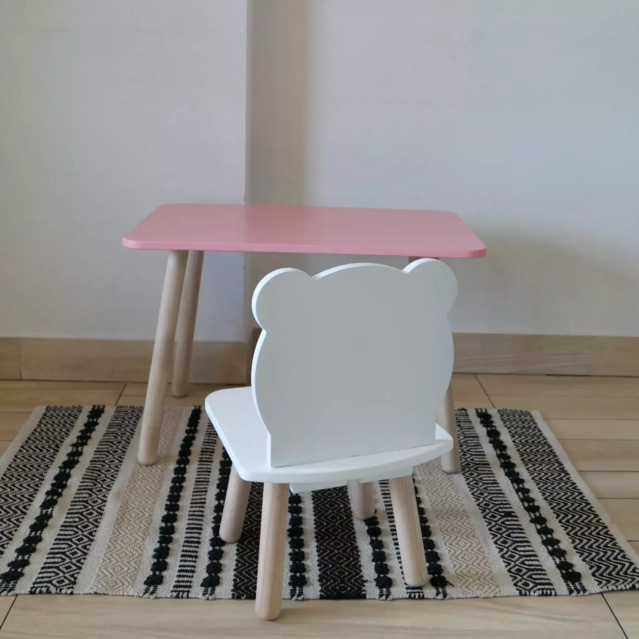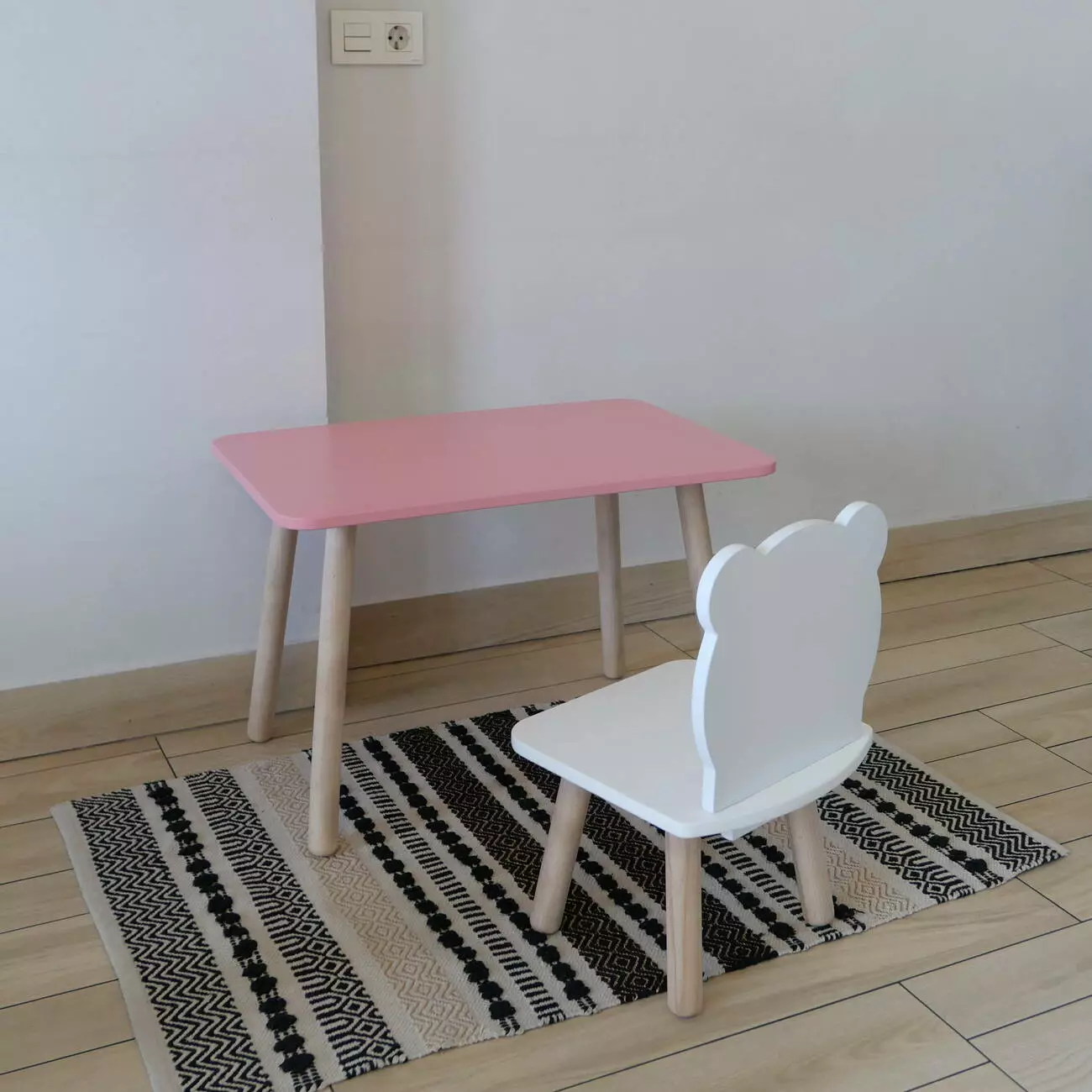 Комплект стіл та стул дитячий ChildWood - Set Стіл рожевий прямокутний + стілець білий Ведмедик (Фанера)