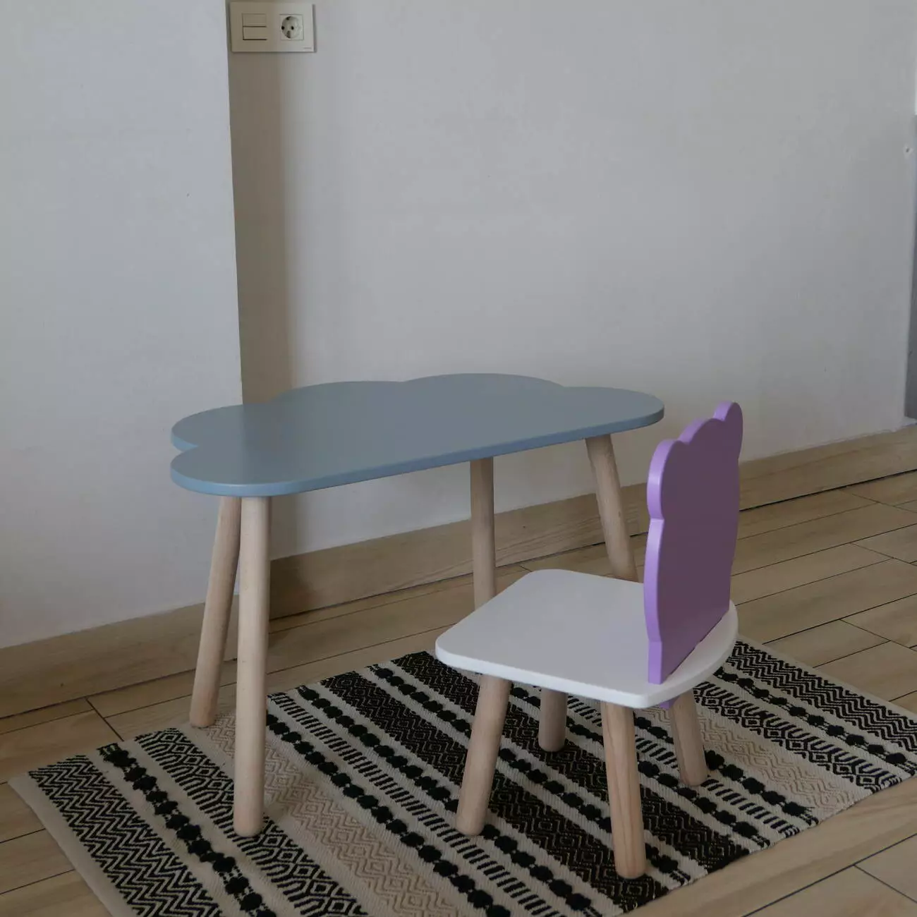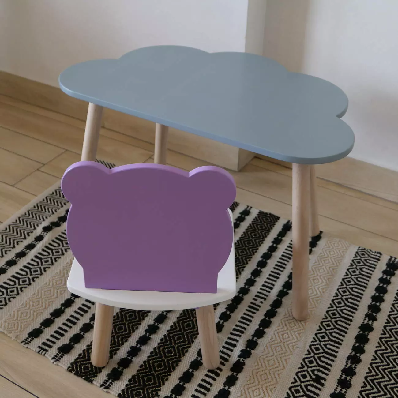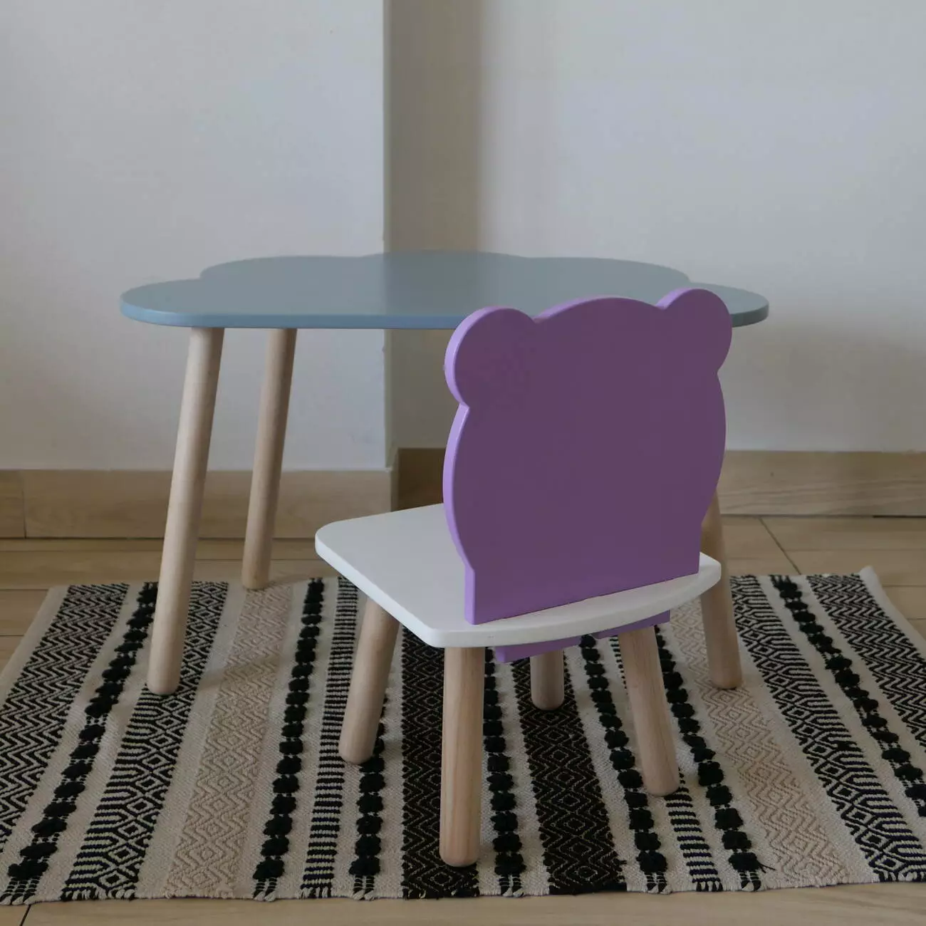 Комплект стіл та стул дитячий ChildWood - Set Стіл сірий хмаринка + стілець білий бузковий Ведмедик (Фанера)