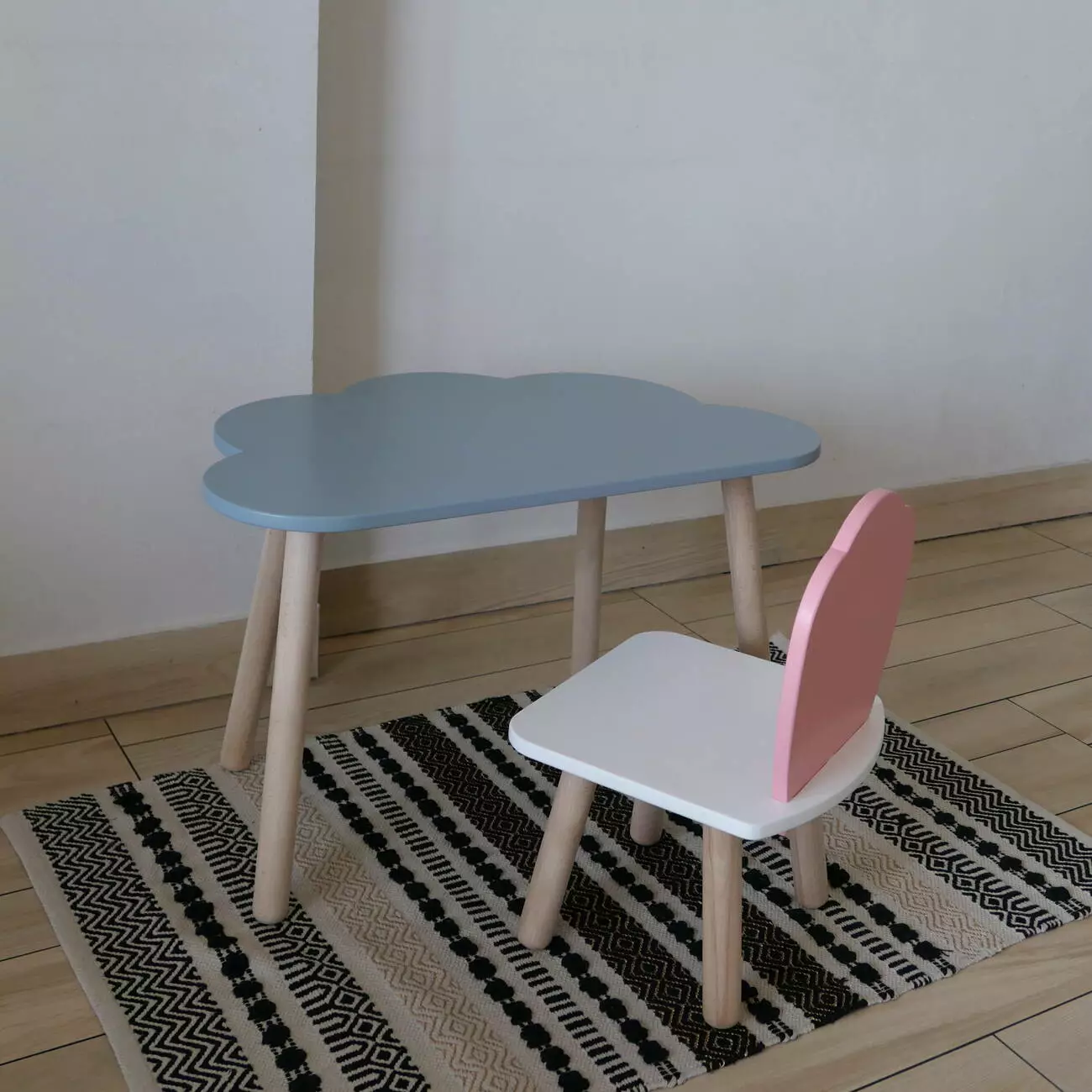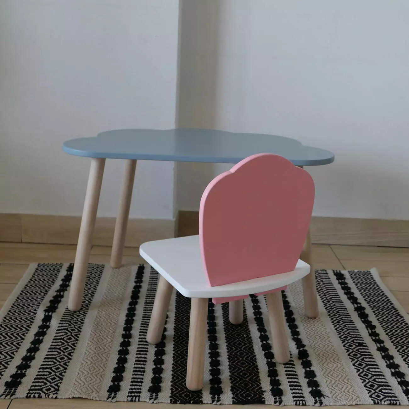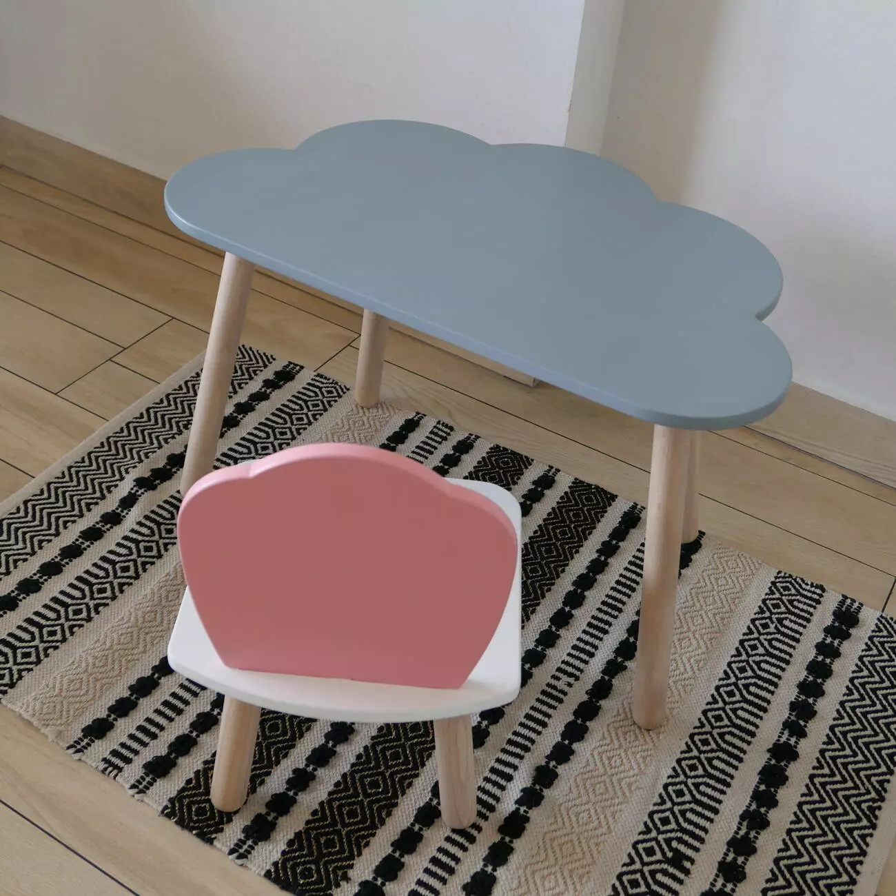 Комплект стіл та стул дитячий ChildWood - Set Стіл сірий хмаринка + стілець білий рожевий Мушля (Фанера)