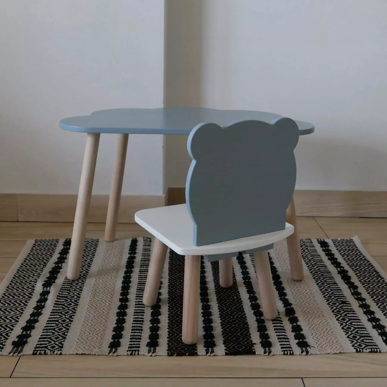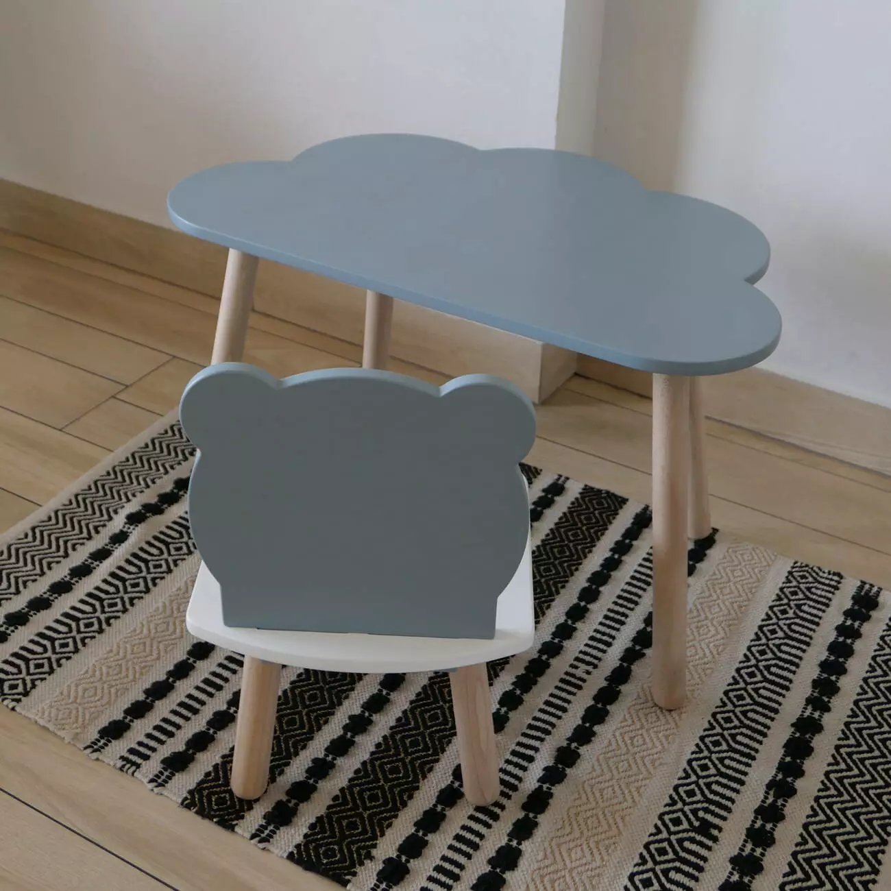Комплект стіл та стул дитячий ChildWood - Set Стіл сірий хмаринка + стілець білий сірий Ведмедик (Фанера)