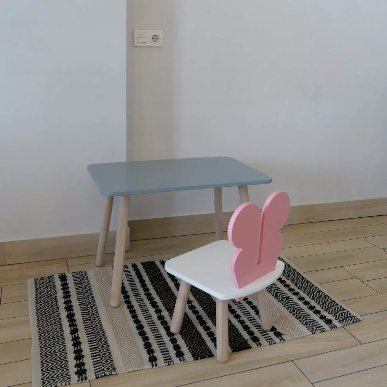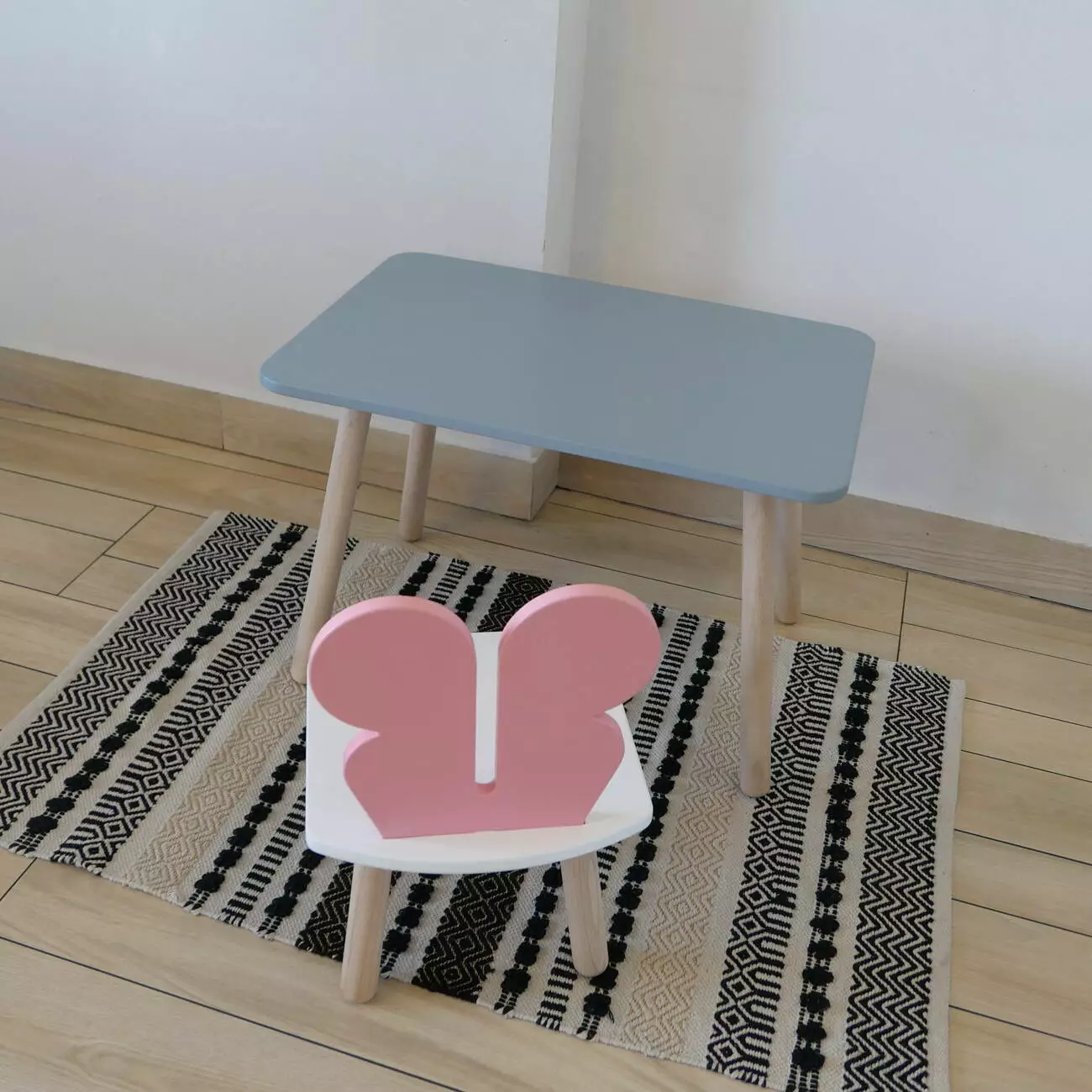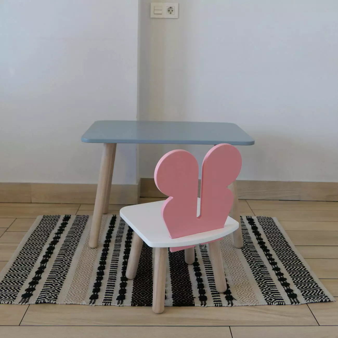 Комплект стіл та стул дитячий ChildWood - Set Стіл сірий прямокутний + стілець білий рожевий Метелик (Фанера)