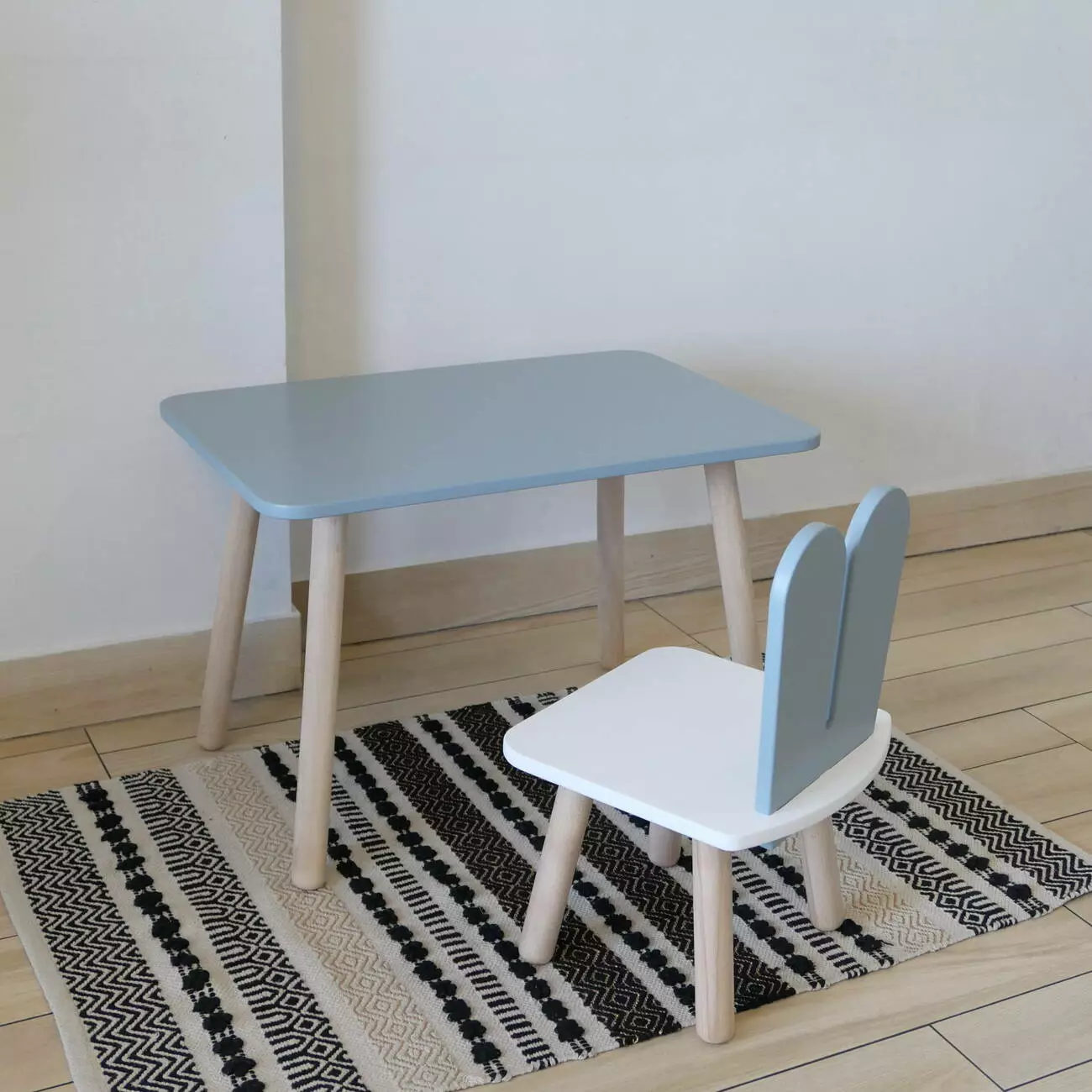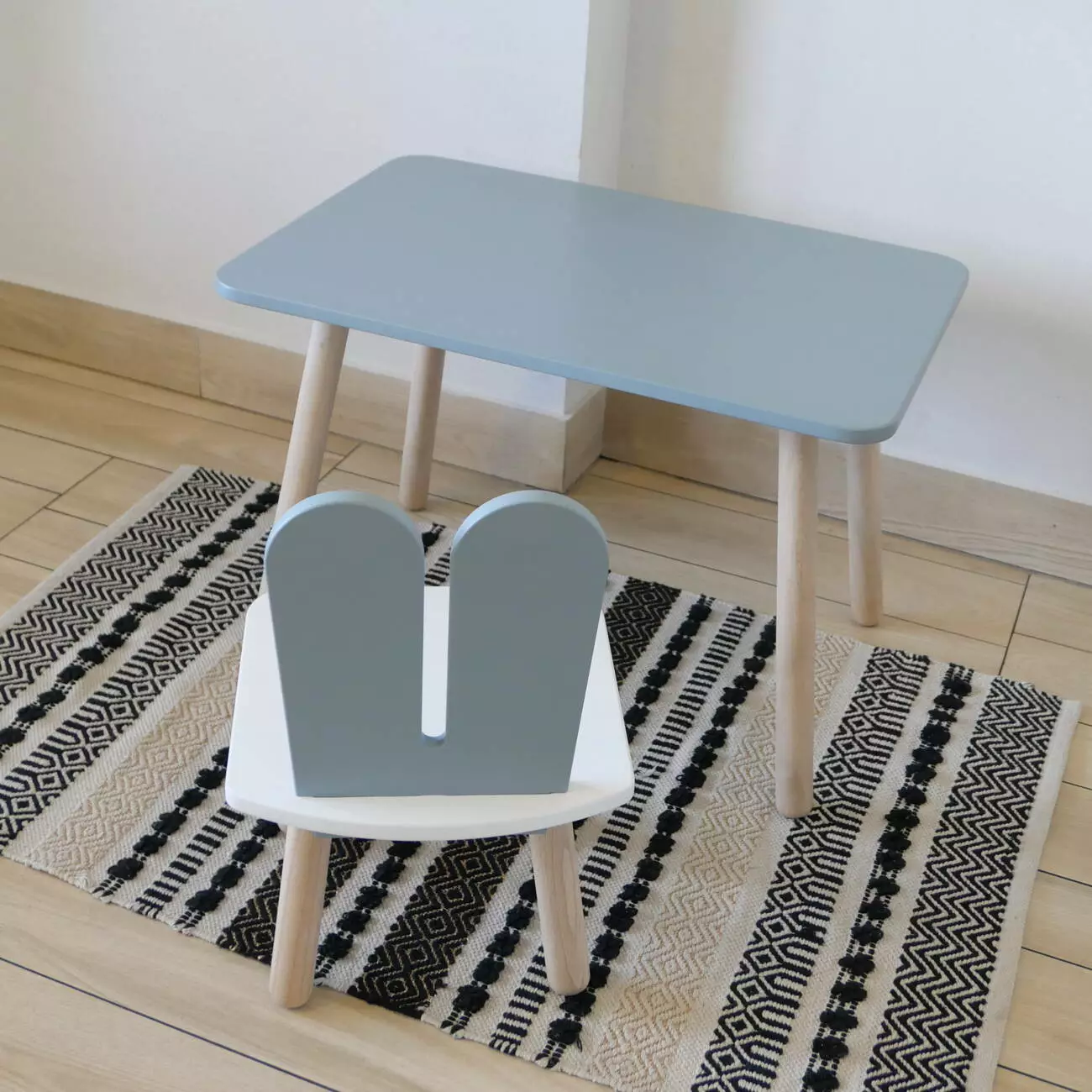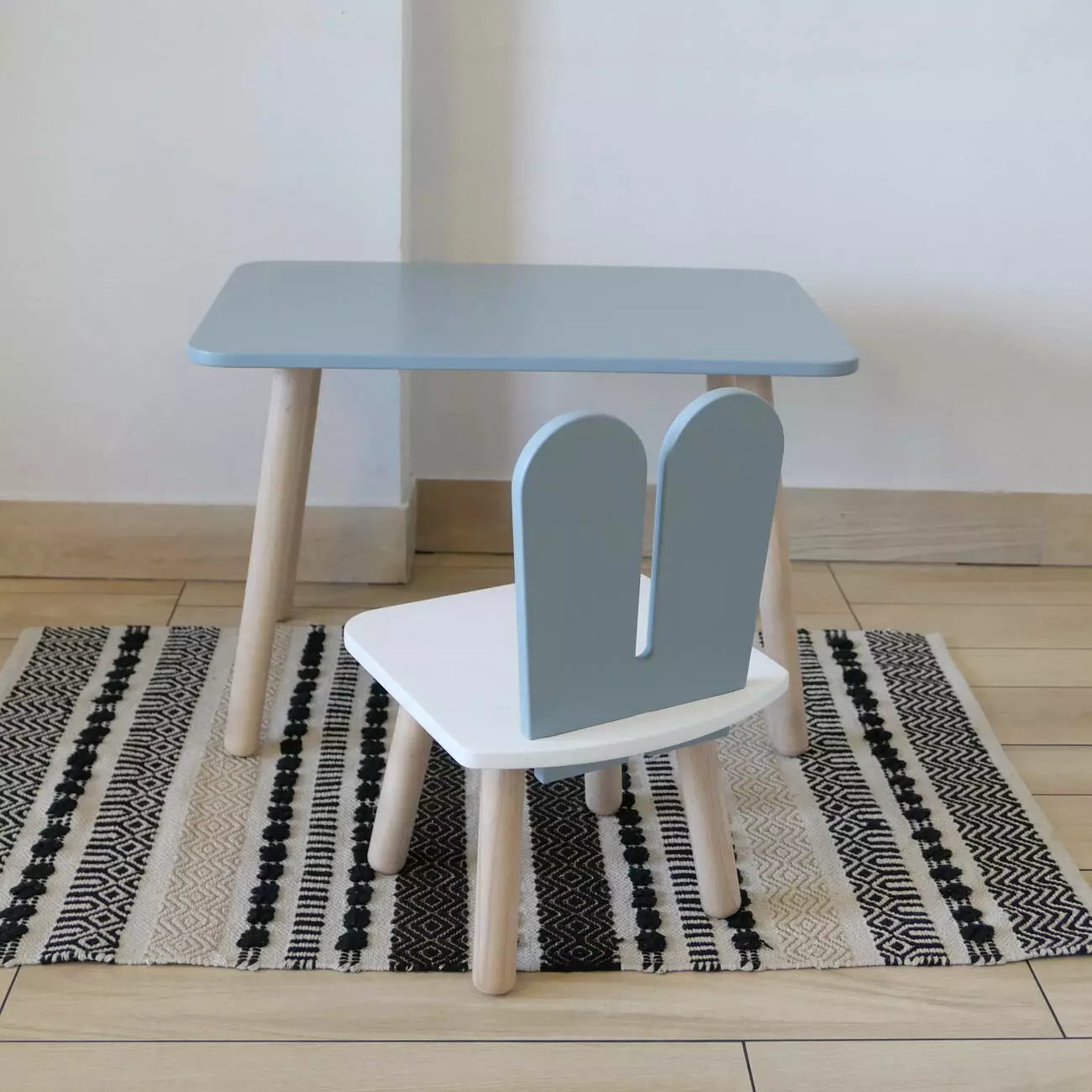 Комплект стіл та стул дитячий ChildWood - Set Стіл сірий прямокутний + стілець білий сірий Зайчик (Фанера)