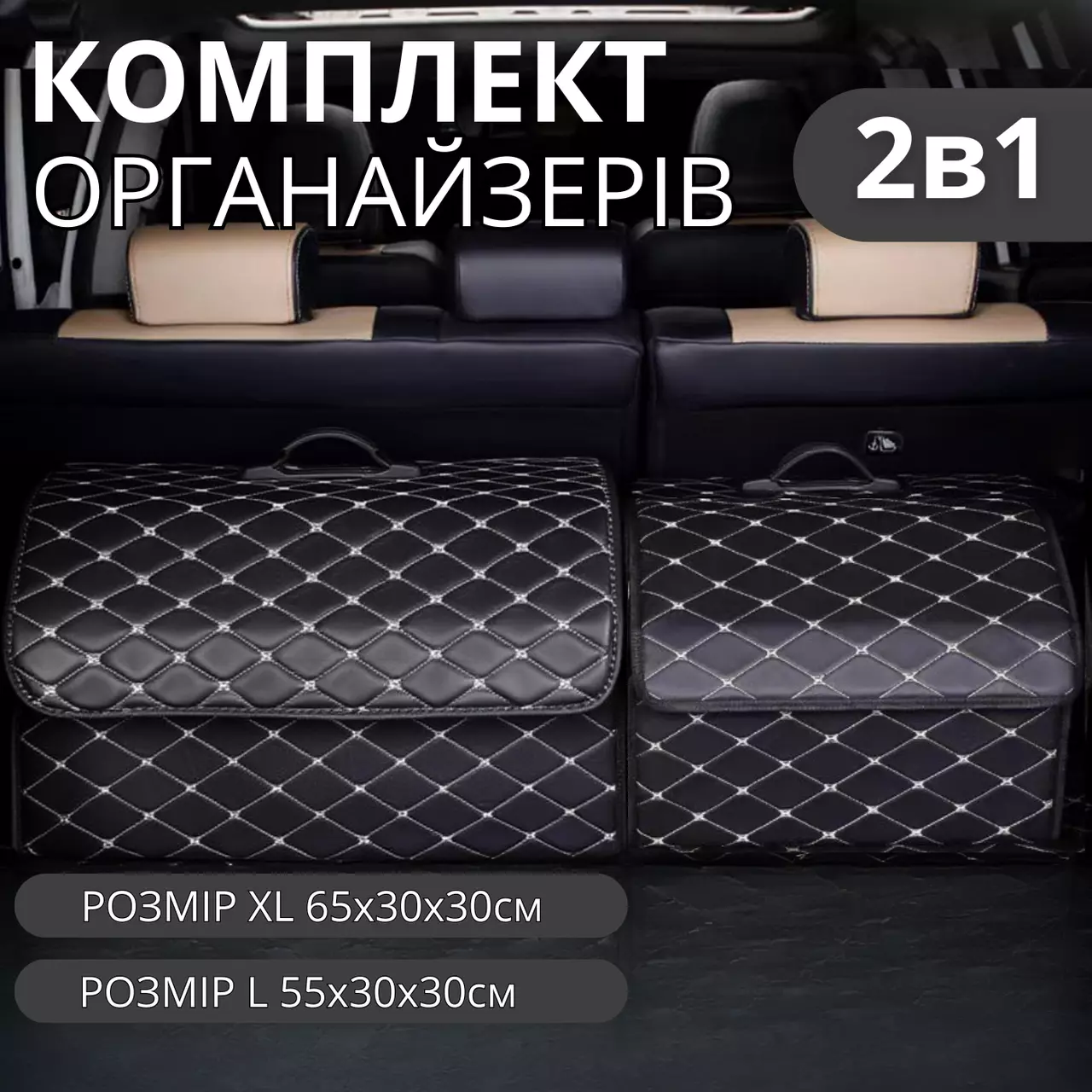 органайзери різних розмірів: 55×30×30 см (L) і 65×30×30 см (XL),