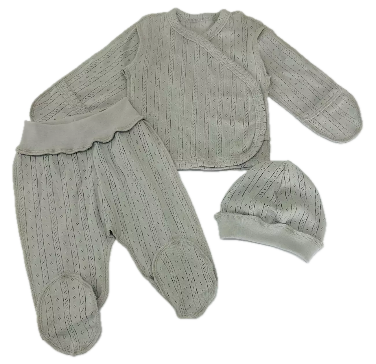 Комплект ясельний: льоля, повзунки, шапочка. Полотно - ластик ажурний, бавовна 100%.