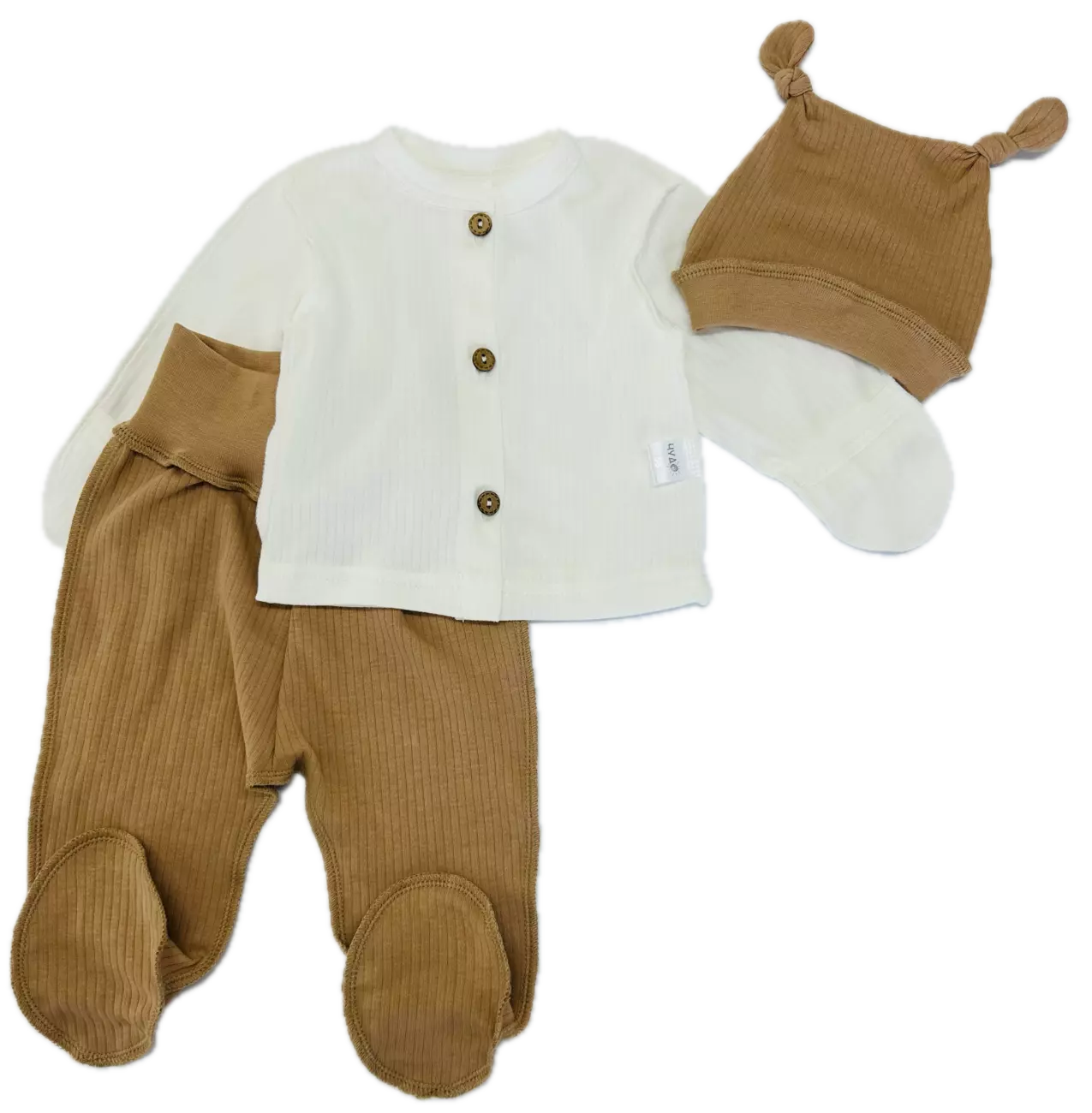 Комплект ясельний: кофтинка з кокосовими гудзиками, повзунки, шапочка. Полотно - інтерлок раппорт, бавовна 100%