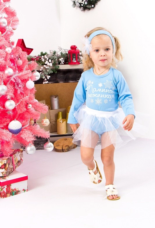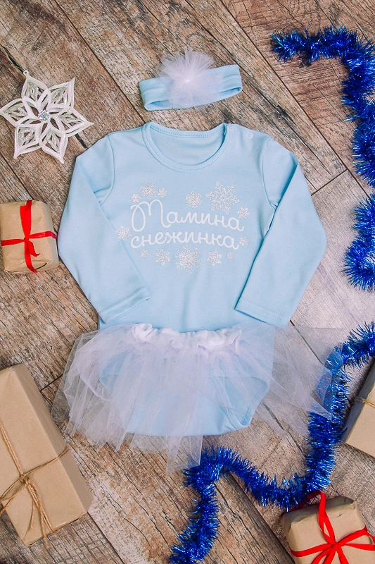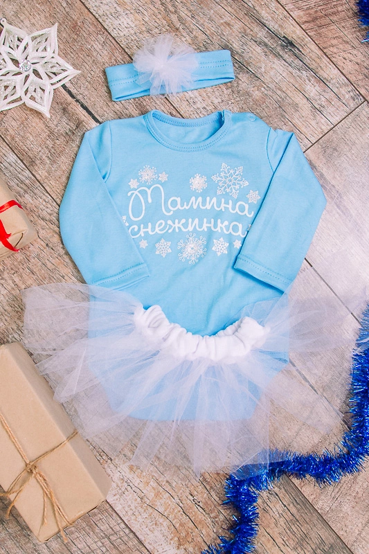 Представляємо Вам неймовірну новиночку - комплект "Мамина сніжинка" для Ваших маленьких принцес! Комплект складається з бодику (застібки - кнопочки між ніжок і на плечі), пишної спідниці з фатину і аксесуара на голову. Бодик прикрашає оригінальний принт на новорічну тематику. Полотно виробу - матеріал високої якості інтерлок (володіє хорошою еластичністю, міцністю, добре тягнеться в ширину). Такий комплект ідеально підійде на новорічні урочистості і свята, і Ви, і Ваша маленька леді обов'язково залишитеся задоволені!