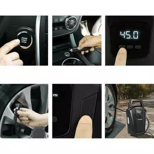 Чіткий ЖК-ДИСПЛЕЙ - автомобільний компресор має РК-дисплей. Ви можете прочитати тиск на дисплеї (у 2 одиницях PSI і BAR), що дає змогу відстежувати його в шинах і встановлювати максимальну висоту, яка підходить для ваших шин. Це значно спрощує точну інфляцію.