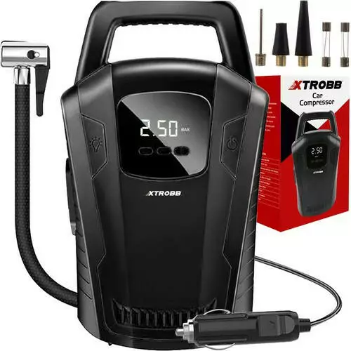 Компресор автомобільний Xtrobb 21866 для підкачування шин 12 В манометр ліхтарик РК-дисплей Чорний