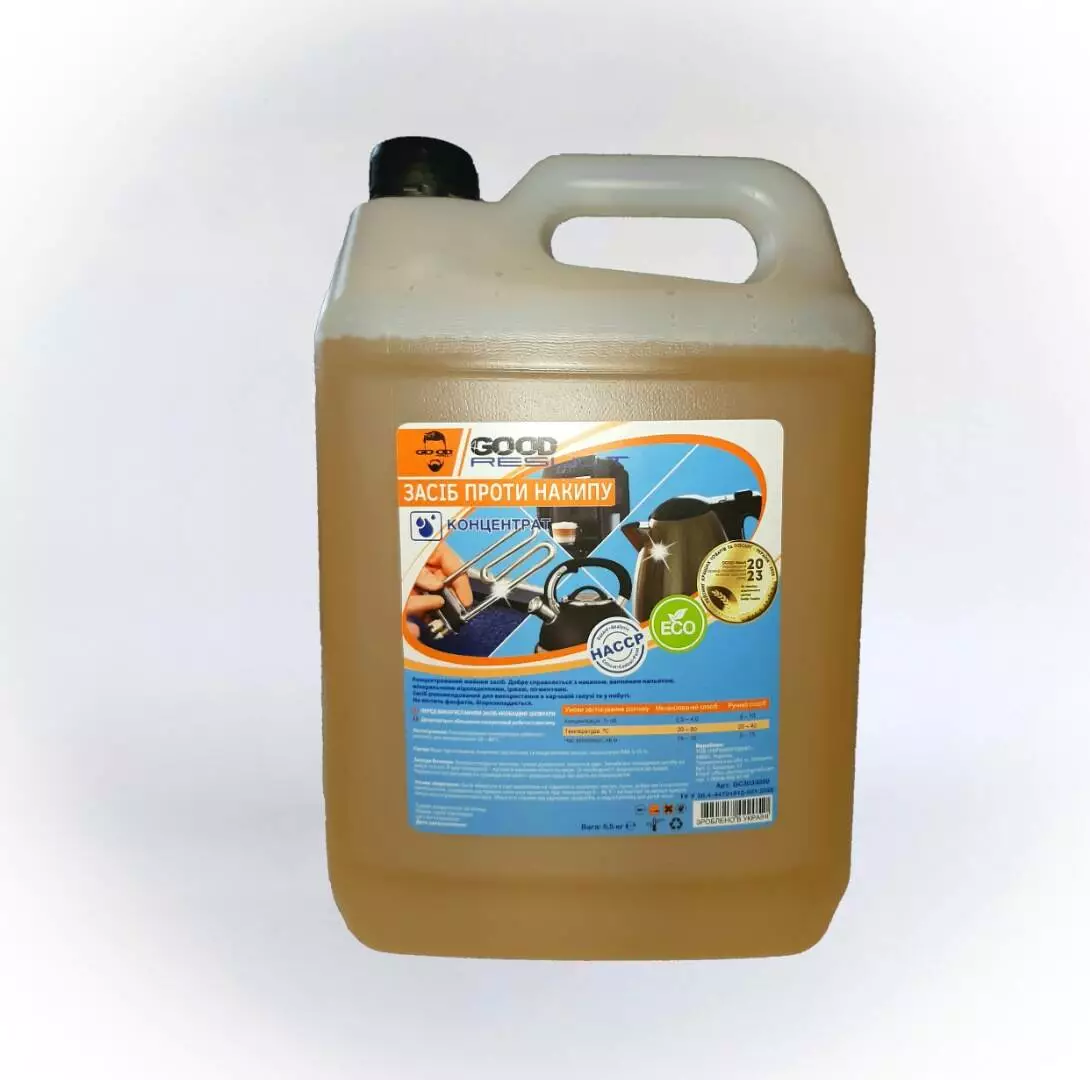 Видаляє накип, вапняний наліт навіть у холодній воді, не